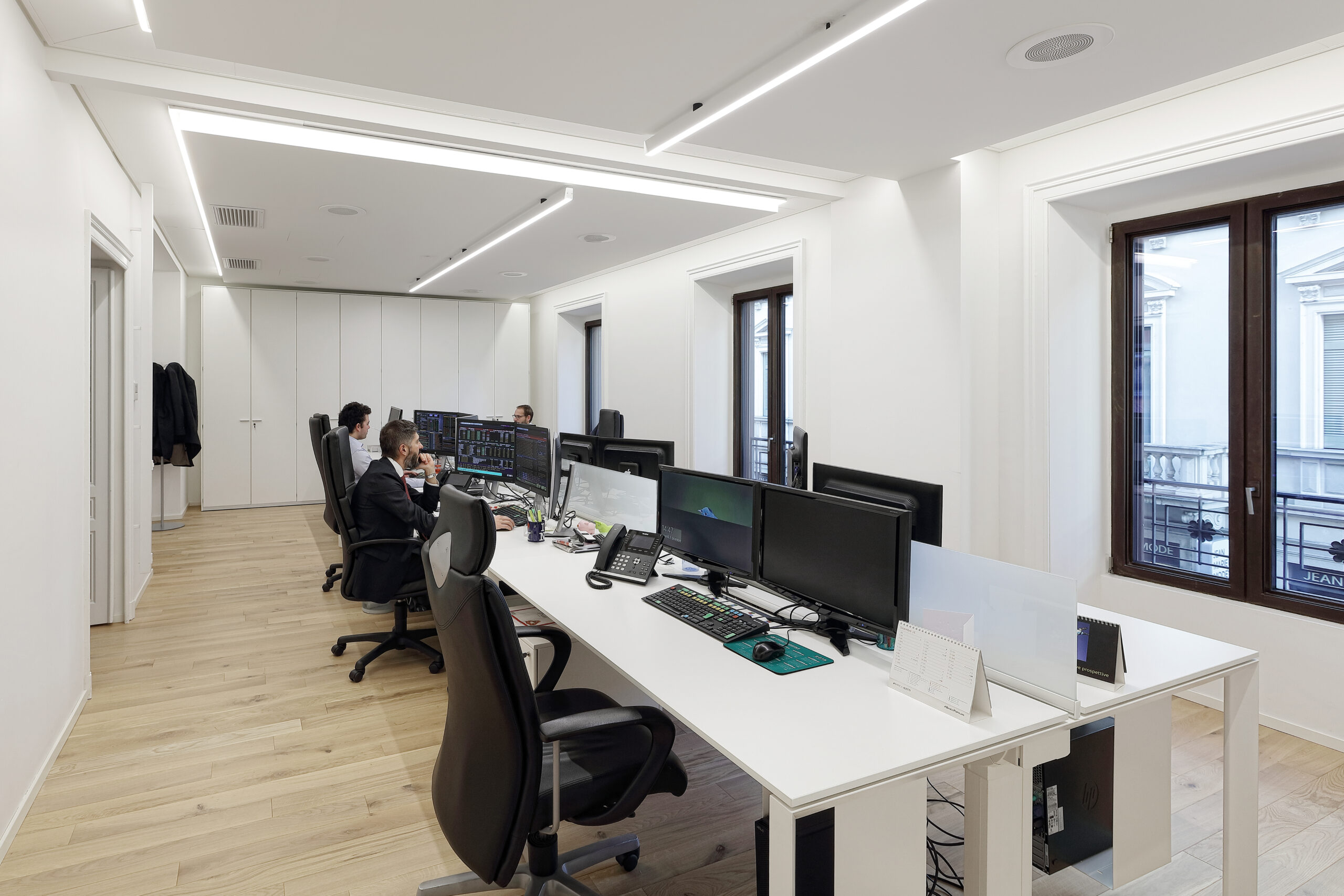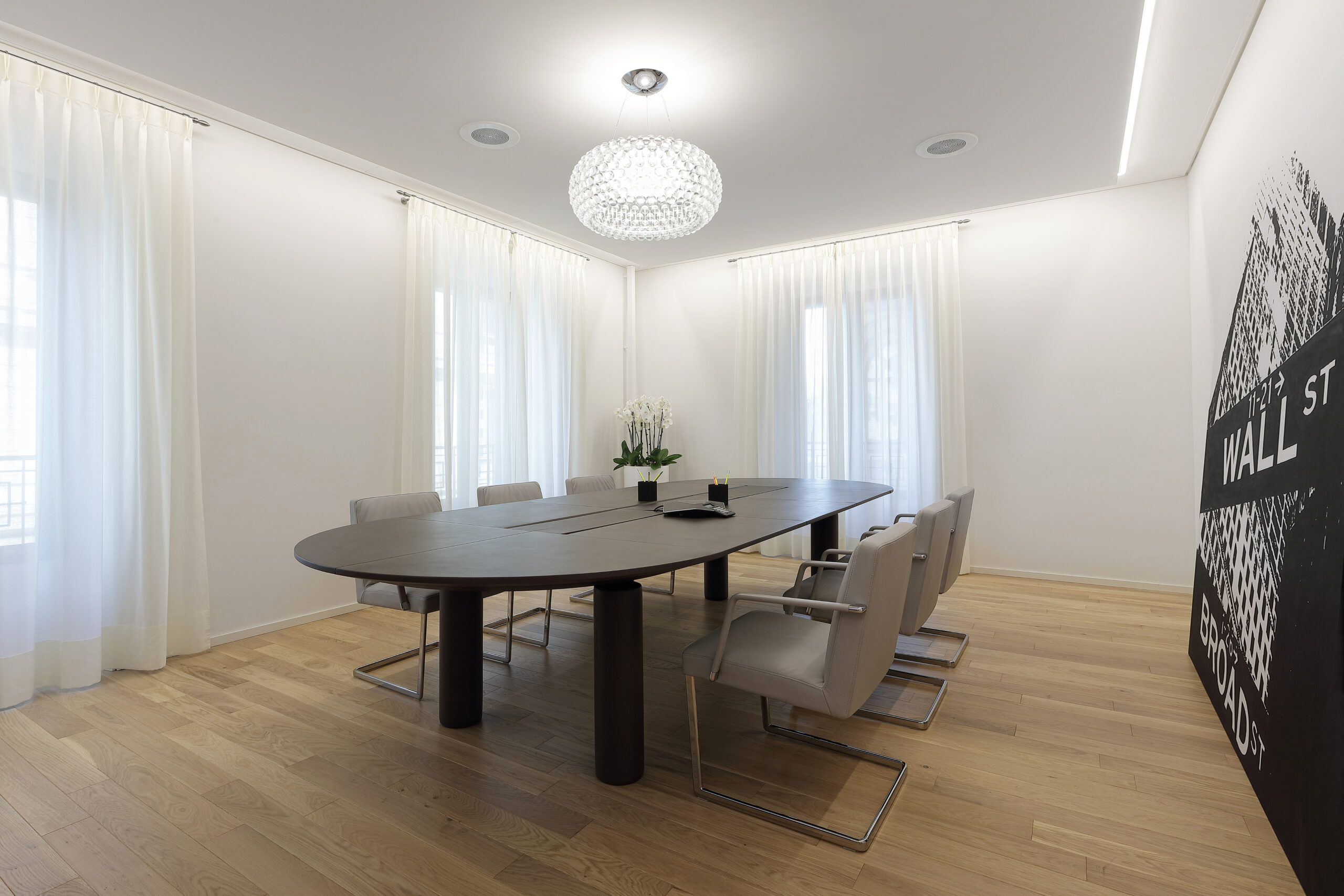 Gli uffici di questa importante società ticinese attiva nel settore finanziario sono situati in un palazzo d’epoca in centro a Lugano, a due passi dal Casinò. Il nostro intervento ha mirato a coniugare la funzionalità operativa degli ambienti di lavoro con la scenografica eleganza degli spazi. Le finiture degli uffici direzionali sono state adattate di volta in volta allo stile e alla personalità dei professionisti che li utilizzano.