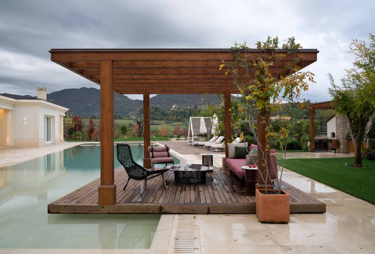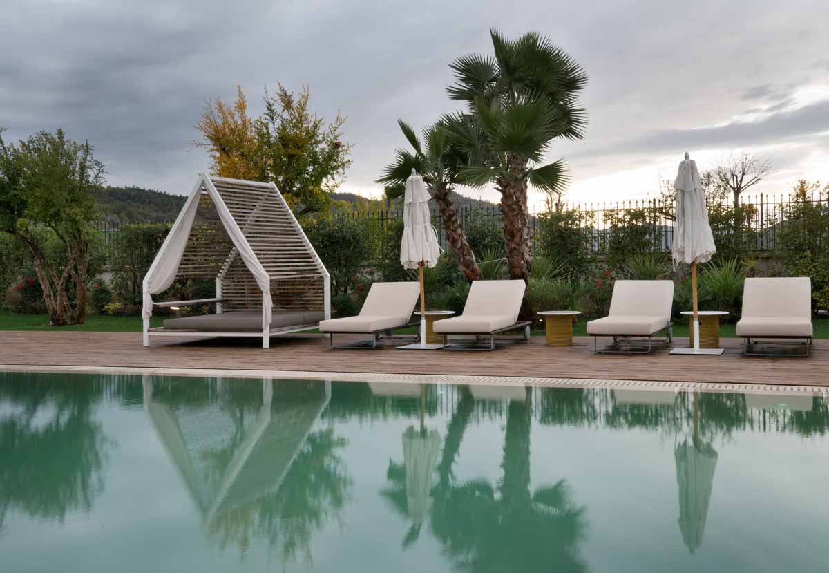 Nello spazio outdoor troviamo invece arredi Kettal, la cui semplicità è in grado di dar vita a un’area relax dove è possibile gustare al meglio il paesaggio circostante.