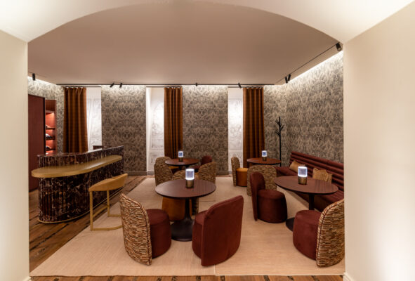 The new continuous Venetian floor – a mixture of cement and marble – returns soft and fluid reflections that dialogue perfectly with the architecture, dotted with transparent curtains that float like theatrical wings. Each element present in this space is designed to give life to a total experience, where barriers and boundaries are experienced as part of the whole, in turn essential elements to appreciate the whole.