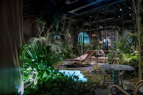 The sensational Baxter’s installation, organized on the occasion of the 56th Salone del Mobile, incarnates the revenge of nature on man. A real urban forest able to encompass the showroom spaces in Largo Augusto, giving an enchanted atmosphere of fairy-tale charm. A sensational forest where the trees live together with the furniture in complete harmony.