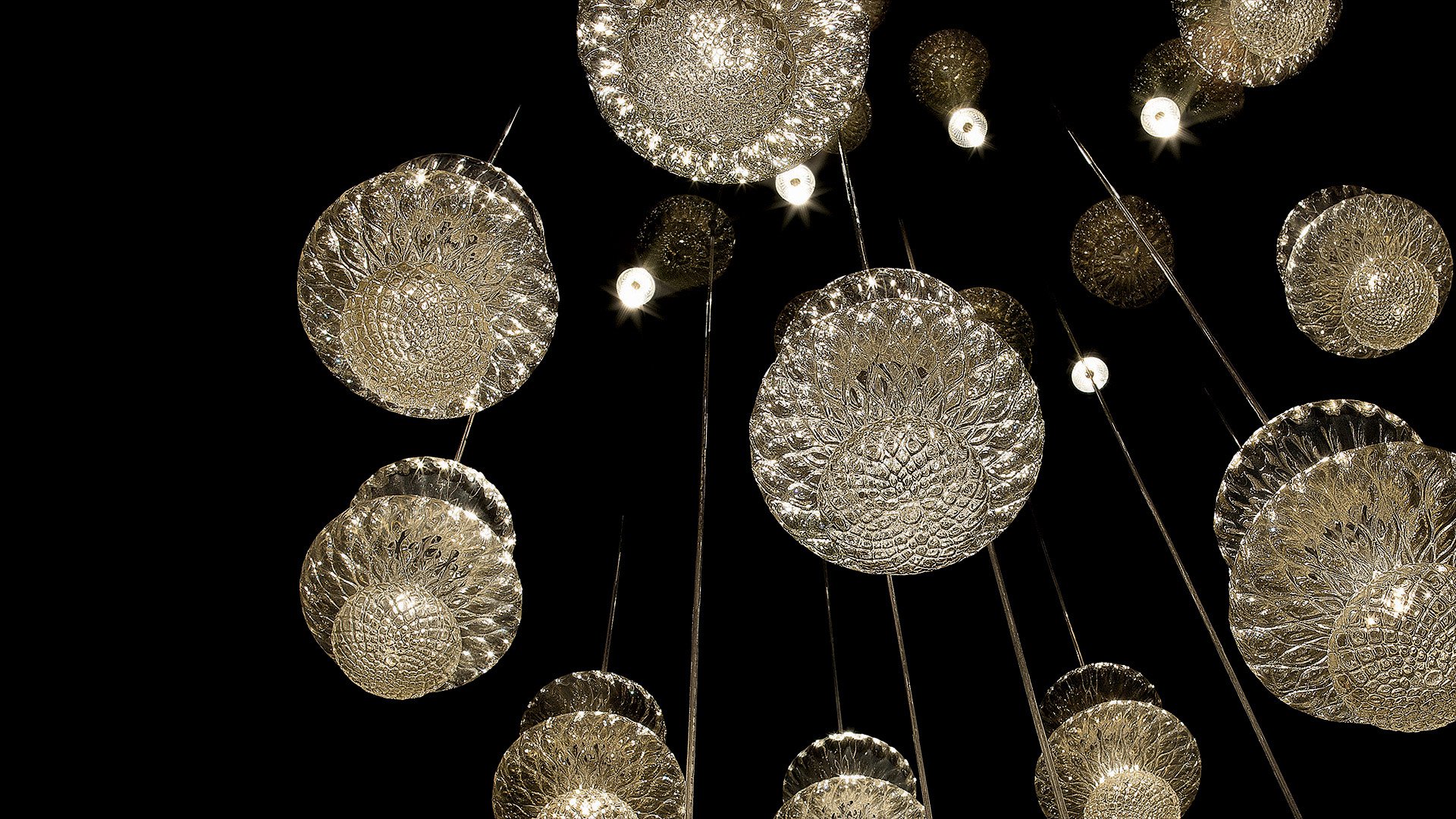 Today, the production of Barovier and Toso is concentrated entirely in the lighting sector. Primarily through its splendid and very rich chandeliers, such as the Taif model created for the sovereign of Saudi Arabia, combining Venetian and French styles, but also applique lamps wall with strong decorative values, fine table lamps, elegant floor lamps, pendant lamps and ceiling lamps.