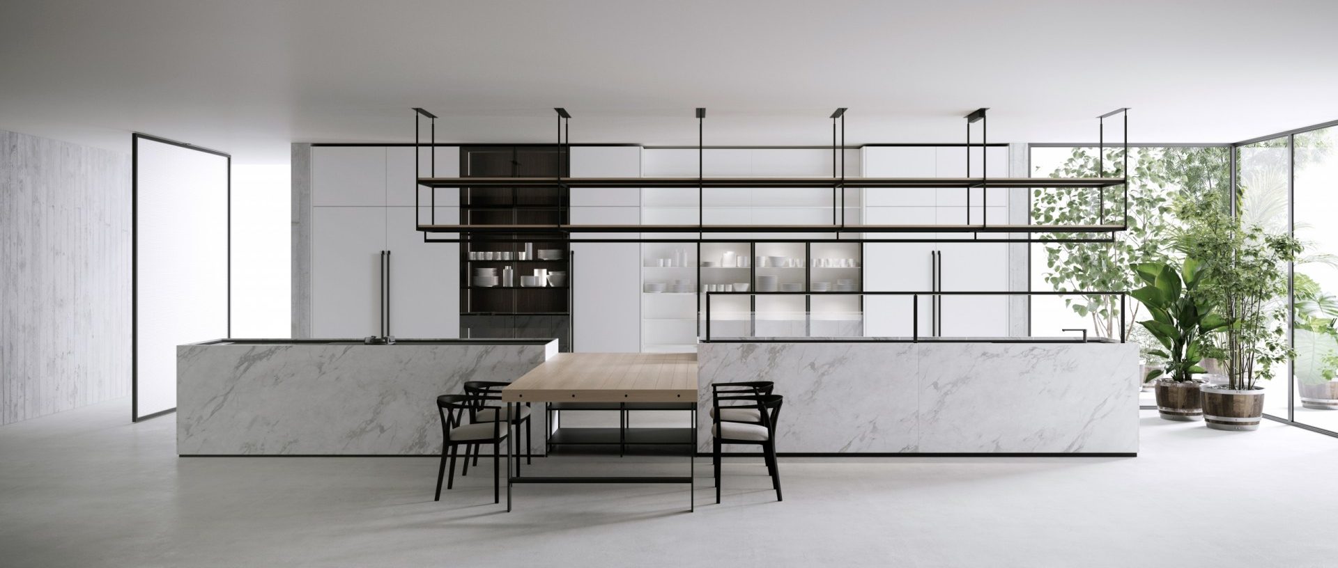In 2003 Boffi purchases the German brand Norbert Wangen, adding to its catalog several models conceived by the entrepreneur and designer of the same name, such as the elegant and minimal “kitchen-cube” K5 and K6, consisting of a single block with retractable top, or kitchen K2, more scenic variant of the same concept. Or, again, the K14 kitchen with the characteristic 30 ° bevel on the top and the elegant K21 kitchen. A more explicit reference to traditional forms is visible in Patricia Urquiola’s Salinas kitchen.
