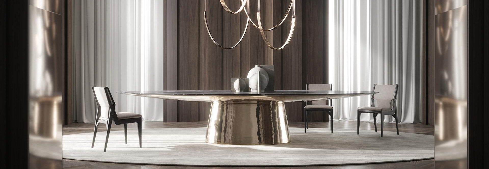 Even the Emmemobili tables have a varied and never banal look, with products such as the eclectic Evo table and the solid Ufo table, both designed by Ferruccio Laviani. The selection of bookcases proposed by the brand is also very interesting, such as the Rosa model by Evgenij Poliantsev. The great experience in wood processing is also put to use in the construction of numerous lines of boiserie with always different effects.