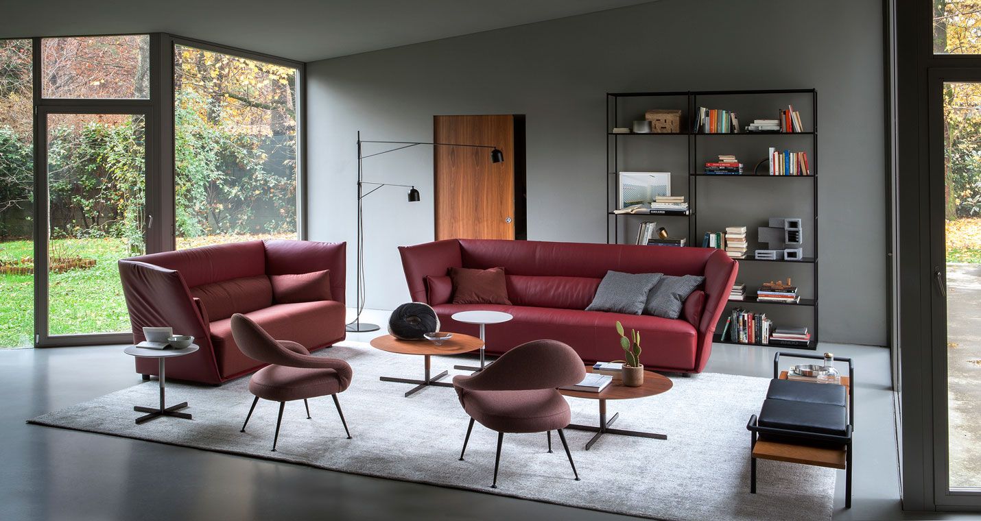 The R&D lab works side by side with world-renowned designers, some of whom have left an indelible mark in the history of design. Among these, Gio Ponti and his Dezza series, and his most famous student Gianfranco Frattini who signed the “floor-ceiling” bookcase Tree. Result of a more recent partnership with the designer Jean-Marie Massaud is the acclaimed Archibald armchair. Inspired by the world of saddlery, the French designer also projected the Grantorino sofa system, marked by compact and light volumes.