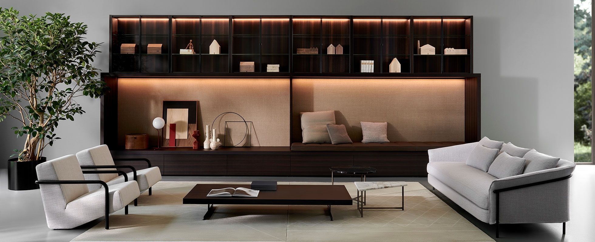 The essential language, the simplification of sign, geometries and shapes are a constant focus point in the research of Porro style that guarantees high quality and durability of the products over time. Porro offers bookcases, containers, chairs, complements and accessories for the living area. Among the wall systems, the System and Modern models offer numerous configurations and variants able to adapt to any need. Very important is the collection of tables, among which the Metallico model by Piero Lissoni stands out.