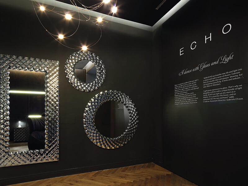 On Friday 17 December the Salvioni Milano Durini showroom was the protagonist of the launch in Italy of the new Echo collection by Fiam Italia, created in collaboration with Marcel Wanders studio.