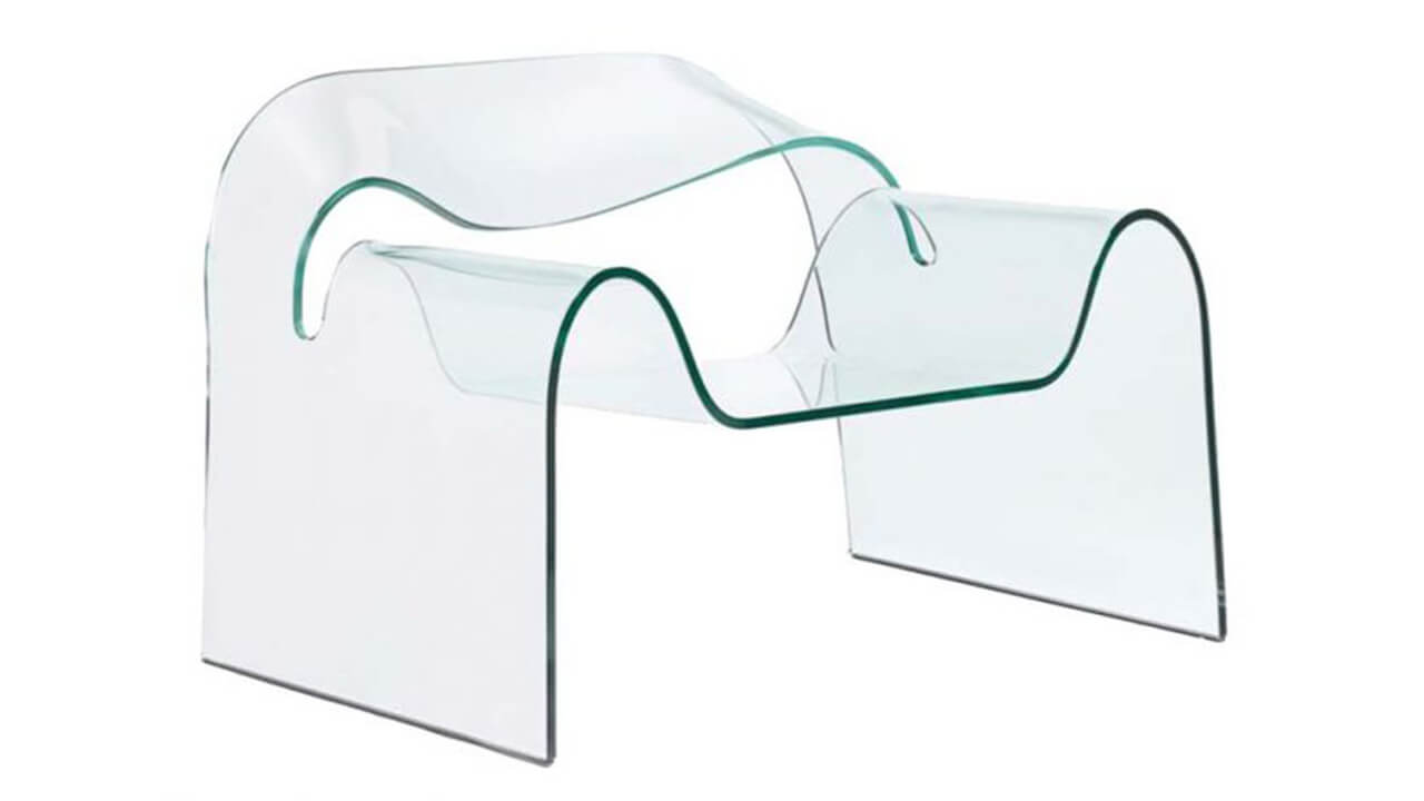 The great expertise with glass of Fiam company and of his owner Vittorio Livi was fundamental for its realization, in fact after two years of their constant experimentation they were able to create the technology suitable for its production. The armchair is made from a single sheet of solid glass, engraved and cut with a jet of water under pressure, then heated in a tunnel oven to be made malleable enough to reach the final shape.