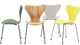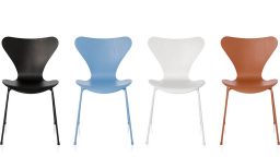 The four legs, stable but very thin, are instead made of chromed steel and do not interfere with the surrounding space, thus contributing to focus all attention on the shell silhouette. With this project, dated on 1955 and initially put in the market under the name 3107 for the chair, Jacobsen expands his attention beyond the strictly domestic space : Serie 7can be used as a dining chair, but it is also perfectly functional for public spaces such as schools, dining halls, offices waiting rooms.