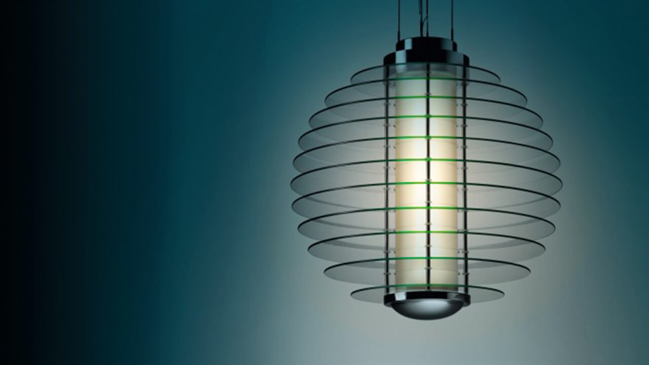 The 0024 lamp plays with the transparent effect, composing the shape of a sphere through eleven thin disks in tempered glass with different diameters, which make it at the same time immaterial and voluminous depending on the chosen observation point. This abstract geometry is compensated by the solid vertical volume of the diffuser, placed in the center of the disks and realized in satin glass to give the light a suggestive effect.