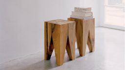 The slightly concave seat of the stool guarantees more comfort. In the Backenzahn Side Table version, on the other hand, is adapted to the function of coffee table, with a flat top suitable for supporting objects. In both variants it is available in both oak and walnut.