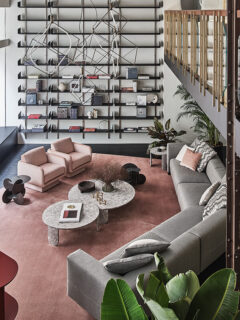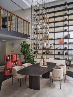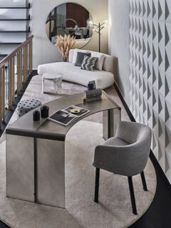 Also to Federica Biasi we owe the reinterpretation in a revolving key of the famous Livre armchair for the living area. Also in the spaces dedicated to comfort and conviviality, let’s talk about Lilas by Dainelli Studio. The armchair features polyurethane padding and a swivel or fixed base with fabric and leather upholstery.