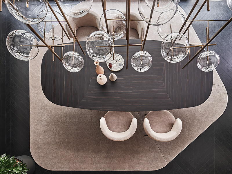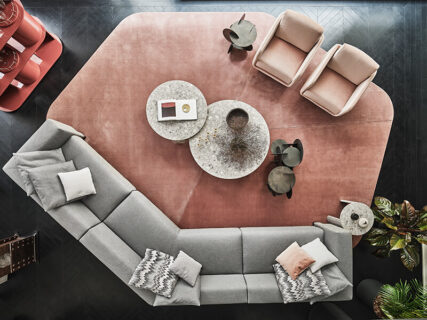 Dainelli Studio also signs Elissa Sectional, the modular version of the Elissa sofa and the Resia short-pile carpet with velvet effect.