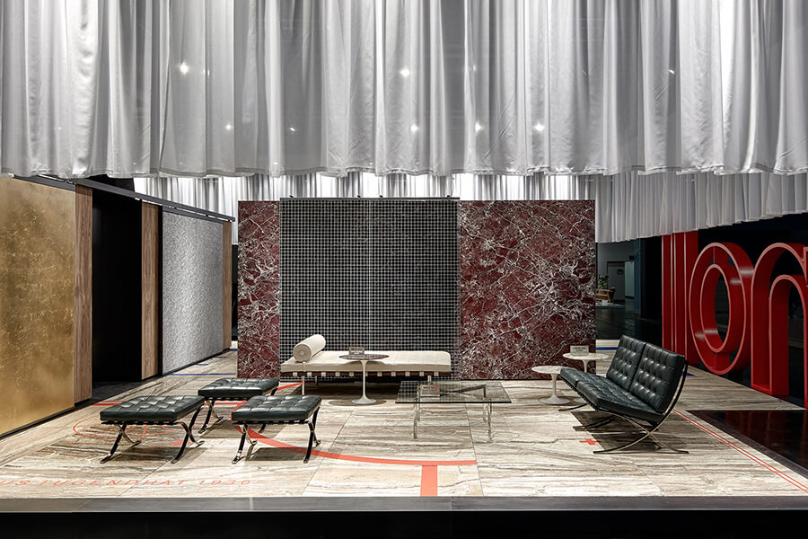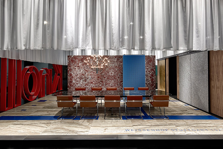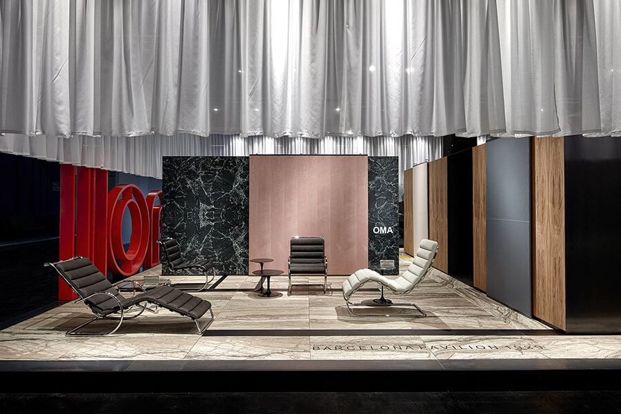 Outcome of the impeccable artistic direction of the OMA architecture firm, founded by the architects Rem Koolhaas, Elia Zenghelis, Madelon Vriesendorp and Zoe Zenghelis, the installation presented some designs of Piero Lissoni with the reworking of the furniture pieces of Ludwig Mies van de Rohe, a master of twentieth century architecture.