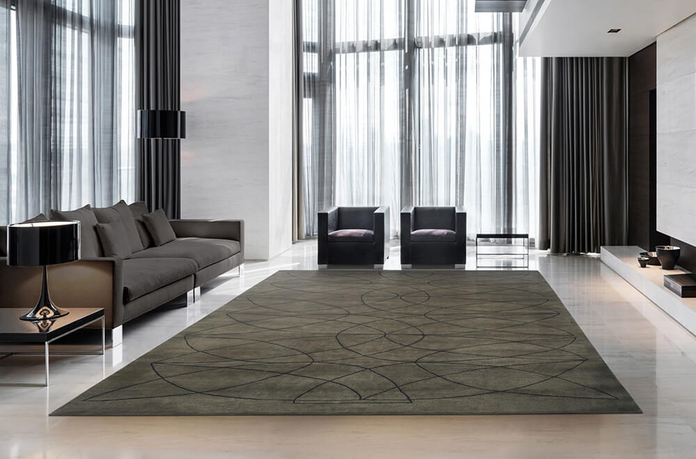 The materials used for the production of the rugs include a wide selection of wools and fine fabrics including Tibetan wool, natural linen and silk. Wool is carded, spun and dyed by hand in accordance with the tradition inherited from Nepal, so as to give each individual carpet its own specific personality as well as a durability that is difficult to match.