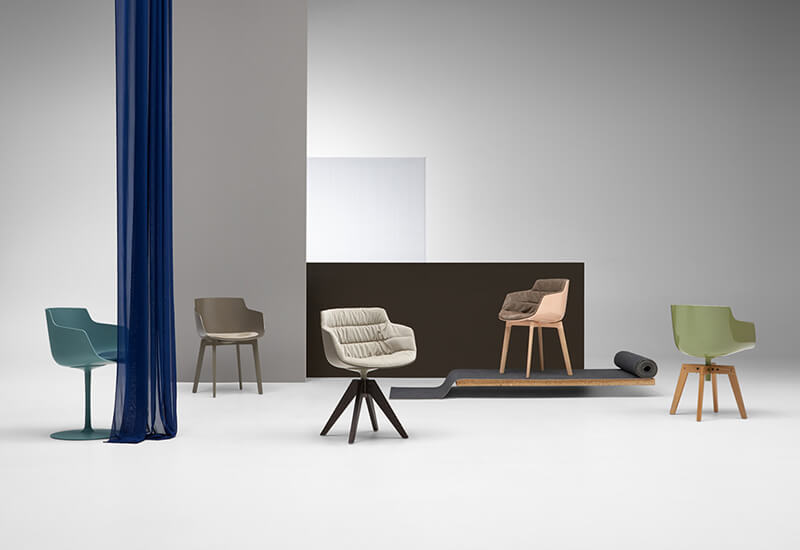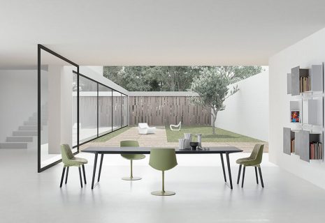 Among the new 2018 proposals we can mention the Siena chairs by Simone Bonanni and the Aiku Soft, Flow Slim Color and Flow Chair Color by Jean Marie Massaud. The Super-Position bookcase recalls a very light superimposition of floors dominated by a minimalism of the shapes. Among the armchairs, Jean Marie Massaud’s Nail stands out with the Yale bed by the same author. Of great importance are the Axy tables by Claudio Bellini and the Tense Material Intarsia by Piergiorgio & Michele Cazzaniga, whose clear and linear forms lighten their structures to make them almost impalpable. The new Yale X sofa by Jean Marie Massaud closes the news.