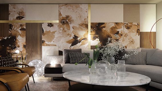 • The collaboration with WallPepper®, an Italian company producing author’s wallpapers, is renewed. The graphics of the new 2019 catalog harmonize perfectly with the furnishings and become one with the different housing projects proposed by Salvioni Milano Durini.