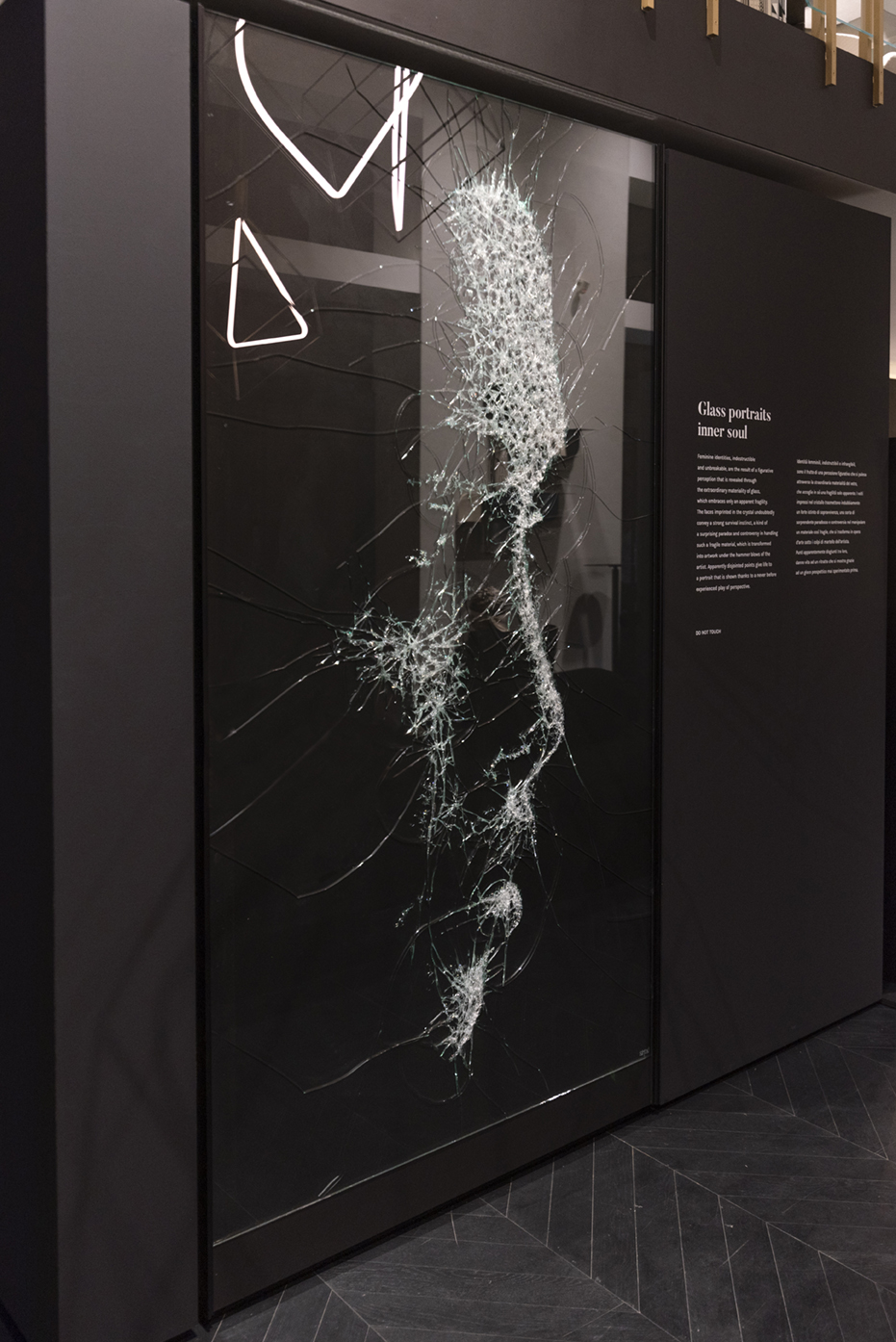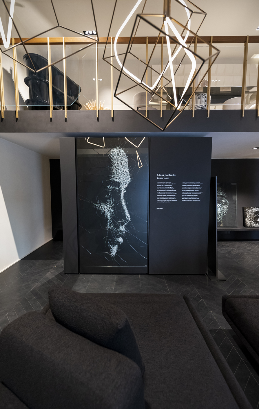 Art and design intertwine in a highly suggestive whole in the Salvioni Milano Gallotti&Radice showroom. The flagship store transforms its exhibition spaces by hosting the precious works of Simon Berger, a Swiss artist from whose hands portraits of women sculpted in glass come to life.