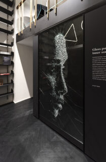 Feminine identities, indestructible and unbreakable, are the result of a figurative perception that is revealed through the extraordinary materiality of glass. On display are eight magnificent pieces by this talented artist and glass master; from the splendid face positioned in the window to the two suggestive internal profiles, to an intense detail of an eye accompanied by three portraits.