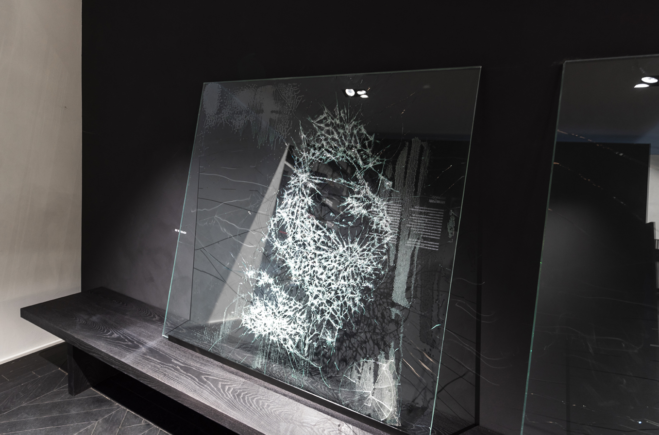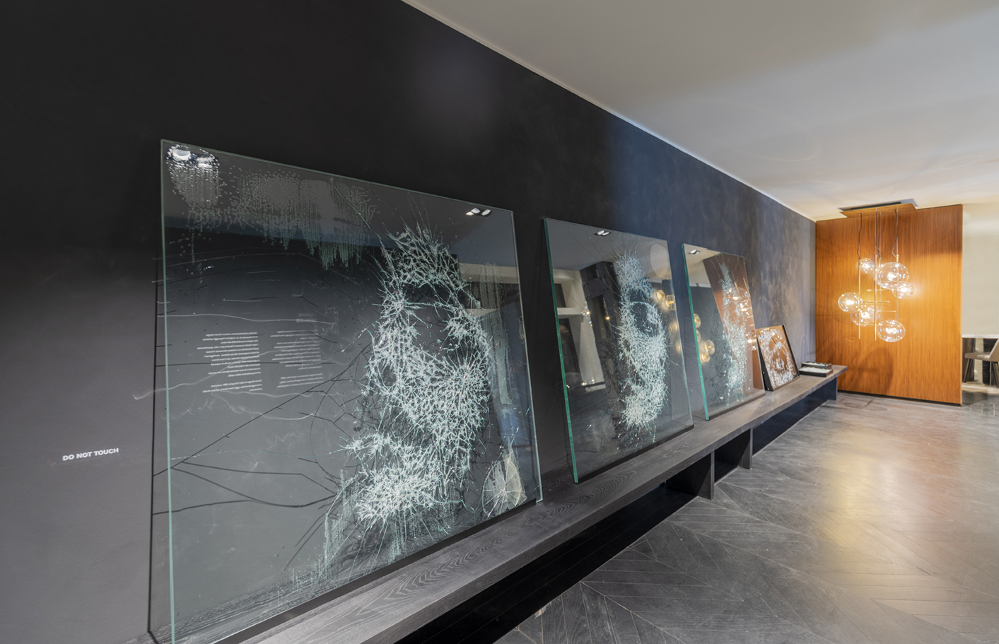 In his hands the hammer is an amplifier of identity perspectives, preserved in the faces and in the glass that makes them eternal. The celebration of a beauty that lasts forever framed in the purity of crystal.