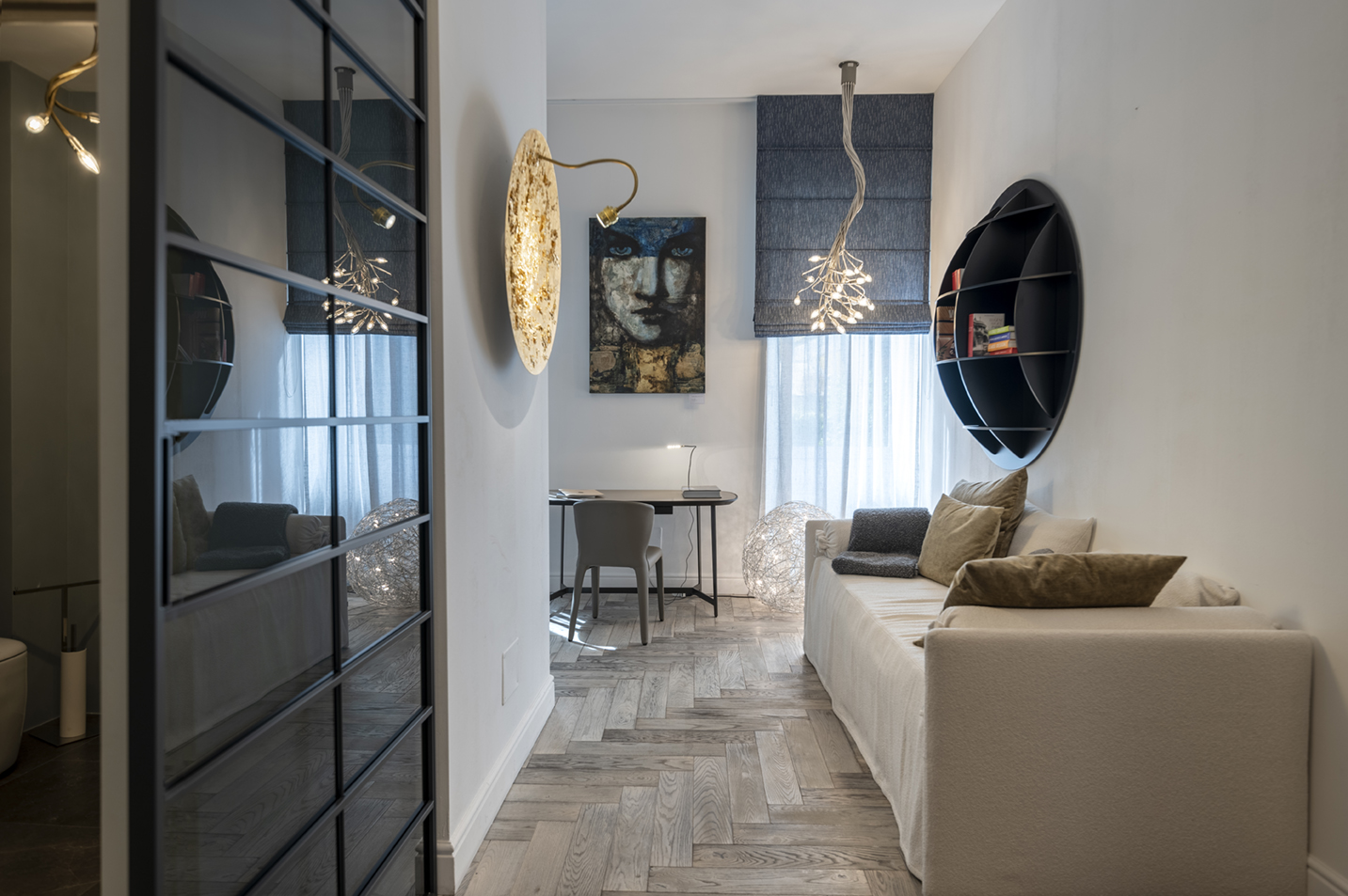 Strong is once again the contribution of Catellani&Smith, a lighting brand, which with its indoor and outdoor lamps enhances and gives prestige to the stylistic choices made by selecting over 150 interior furniture brands. Wallpepper wallpapers contribute to the suggestion, creating visual cues and perfectly balanced views, beautiful to see and touch.