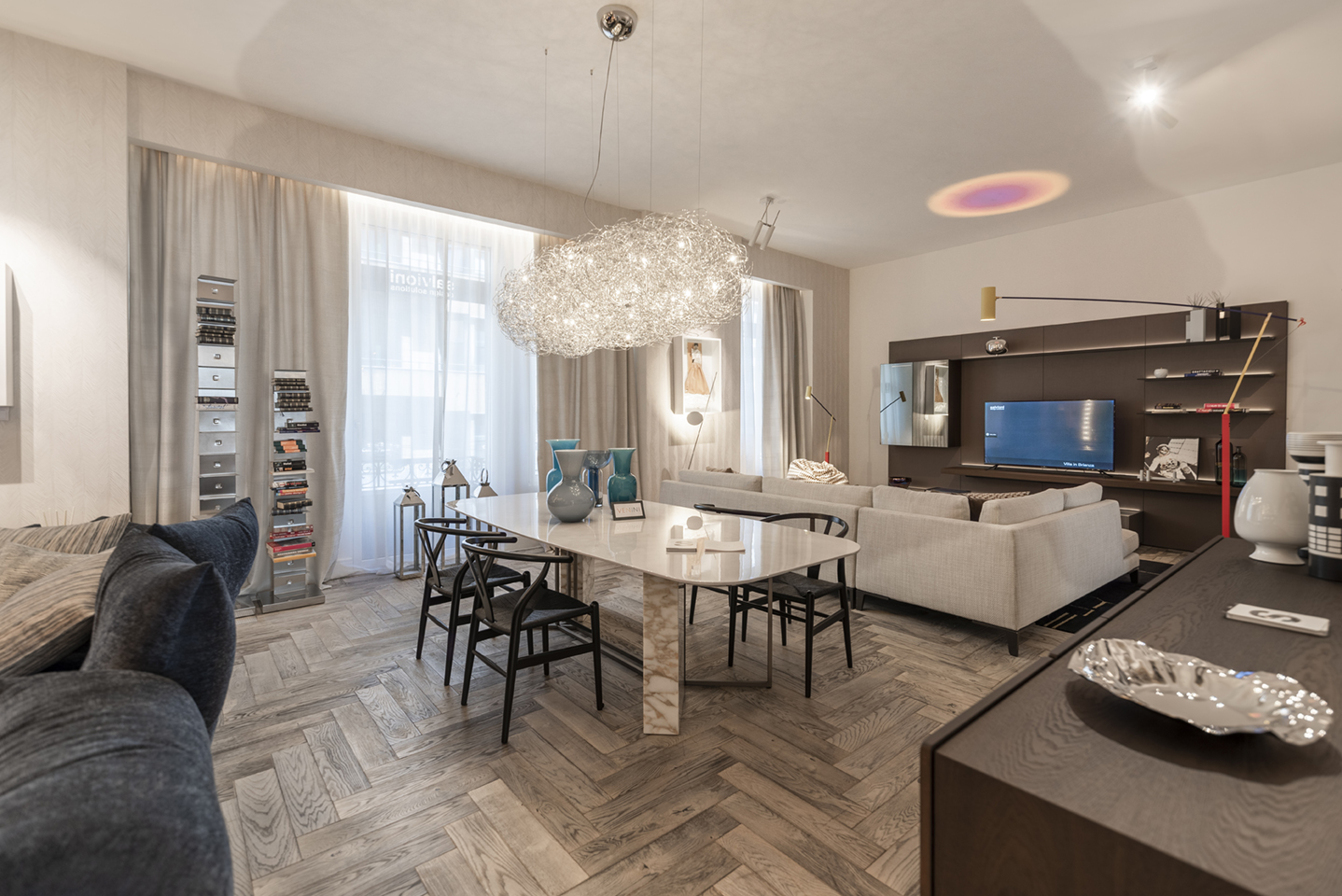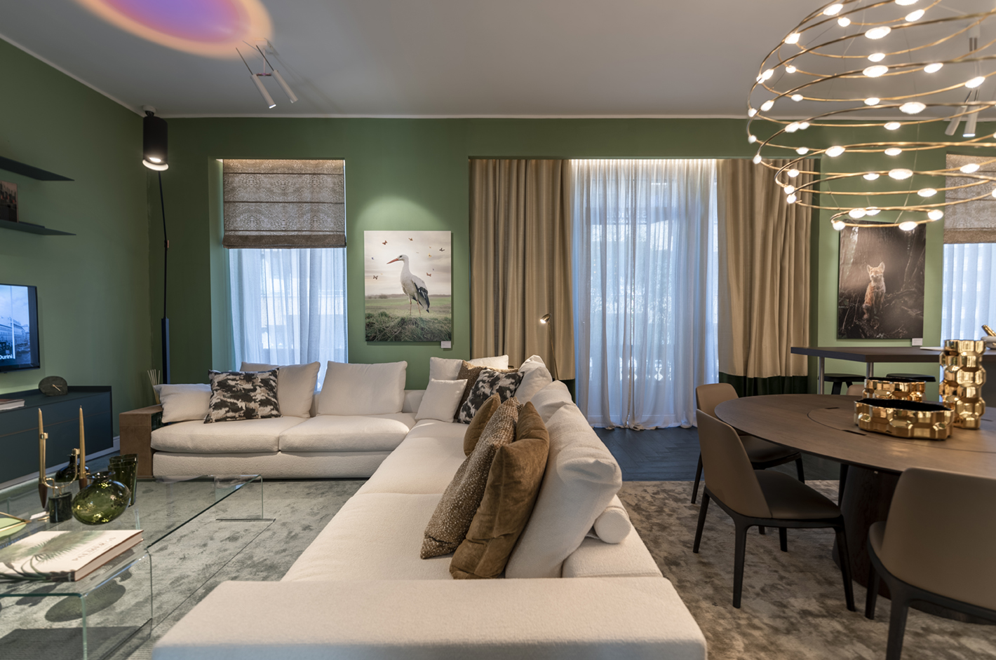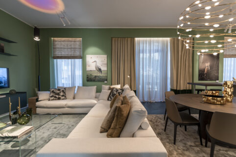 A precious selection of fabrics made by the Roberto Molteni brand enriches the mix of furniture, colors and materials, creating the perfect harmony between different environments and contexts.