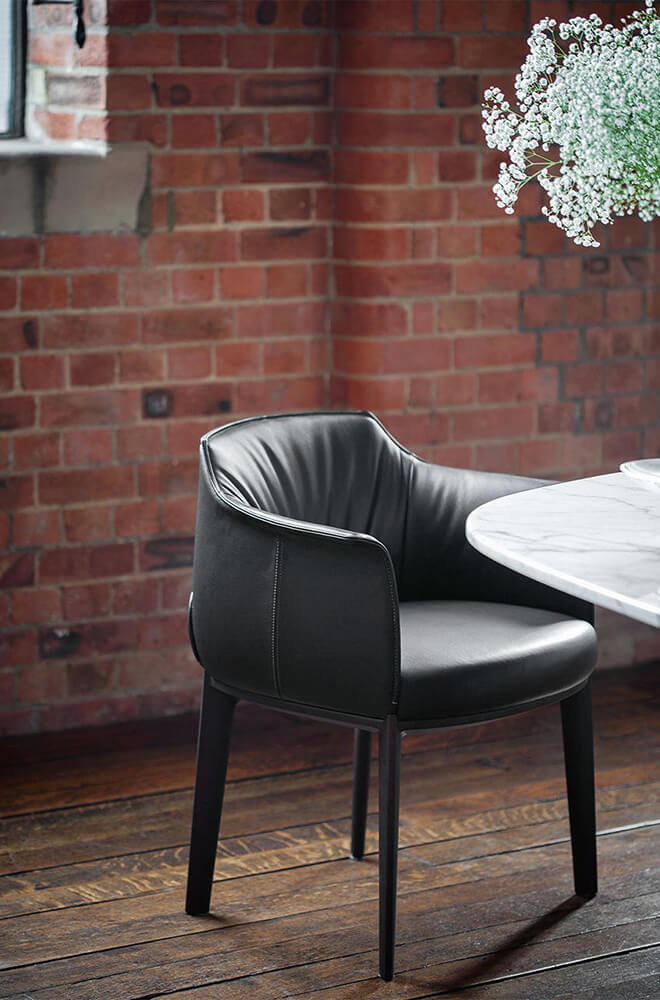 Archibal dining chair – Starting from the iconic Archibald, Jean-Marie Massaud succeeds in the difficult task of creating another small masterpiece, a dining chair of impeccable elegance. This last addition to the Archibald line, which ten years ago was presented as an updated version of the classic English cockpit armchair, maintains all the comfort of the famous collection, with a smarter and more casual allure that makes it particularly eclectic, ideal for contemporary environments or, in contrast, in more classic contexts.