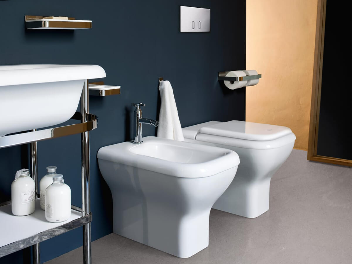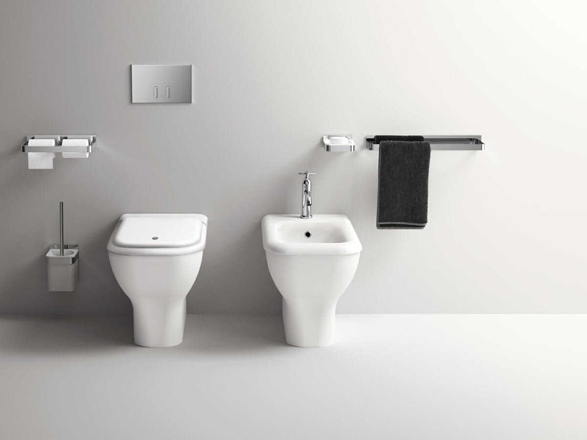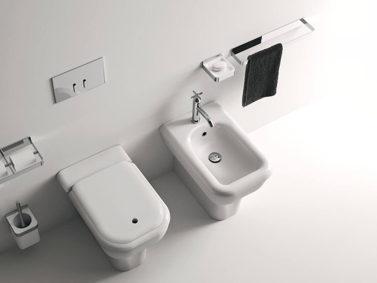 The retro shapes of Agape's Memory line of bathroom fixtures recall those of the ancient traditional bathroom, in which even a humble and functional element such as the bathroom fixtures acquired decorative value with their measuredly charming and elaborate shapes. To these references to the past is added the traditional Agape touch made of skilful design and harmony in the proportions, thus giving life to a reassuring but not trivial object. The Memory line consists of a floor-standing toilet and bidet, both available in both a total white finish (glossy or matte) and in a more contemporary two-tone version, with a light gray or dark gray exterior.