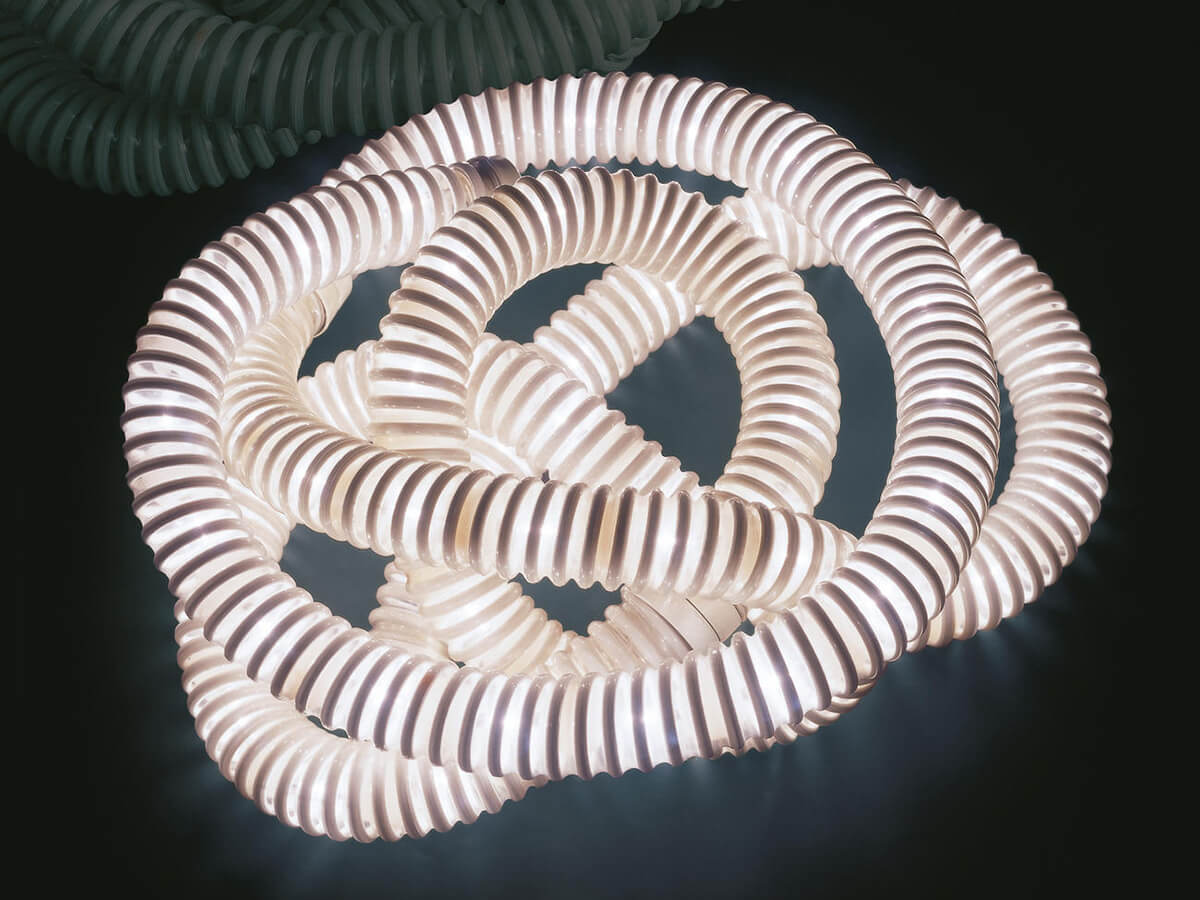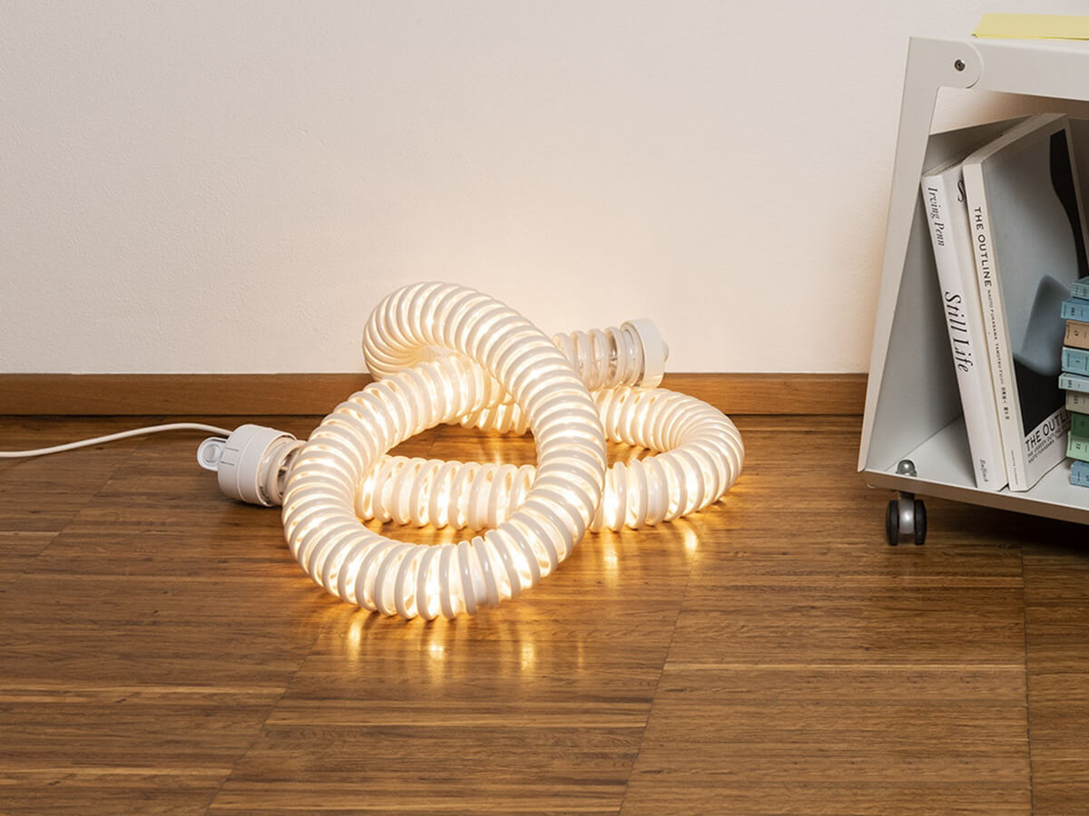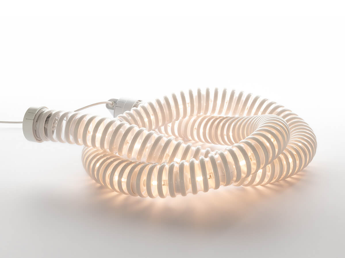 The Boalum table lamp was born in 1970 by Livio Castiglioni and Gianfranco Frattini. By Domus it is defined as "a snake of infinite light", capable of enriching the environment with its rich and suggestive shades. Immediately becoming part of the greatest icons of its time, Boalum still remains an element of extreme beauty to be inserted in any room of the house, from the most to the least formal. Boalum can be connected in series up to a maximum number of pieces to create more organic and suggestive compositions. Its structure is in translucent flexible PVC, reinforced with resin terminals to make it practically indestructible. When it is switched on, it emits a diffused and particularly pleasant light.