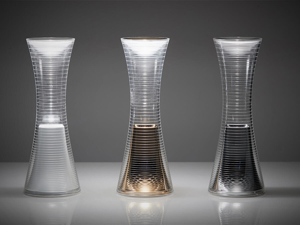 Technology and design meet giving life to Come Together, a portable lamp that lends itself well to multiple uses depending on the need. Wire-free, Come Together dispenses incredibly vivid, yet dimmable lighting. The methacrylate and aluminate structure ensure resistance and durability over time, key elements for modern furniture often subjected to considerable stress and performance requirements. The body mainly consists of a transparent optical machine with gradients to transport light and distribute it. Come Together can be placed in any environment, the slim and supple body able to stand out wherever it is placed.