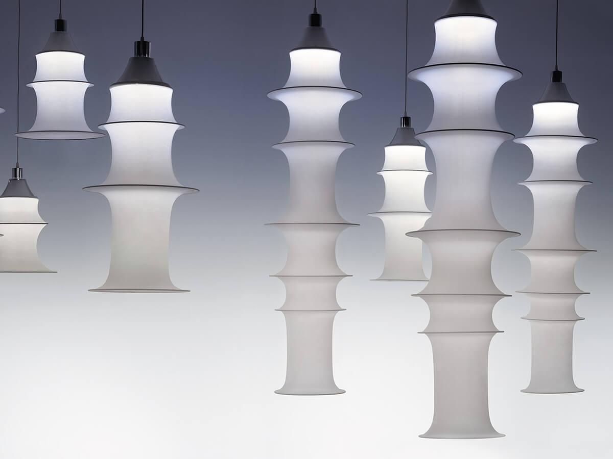 A suspension lamp of extreme grace and beauty, capable of expressing a unique personality. From the creative genius of Bruno Munari, Falkland consists of a white tubular elastic mesh diffuser stretched over a natural aluminum structure. The shape of Falkland is born from the tension of the filanca tube and from the weight of some metal rings that create a spontaneous shape, generated only by the tension of the internal forces that compose it. A single bulb and an aluminum reflector echoes the shape of the fabric's curves. The concept of Falkland is based on the principles of efficiency and simplicity, often referable to oriental art which it seems to be eyeing.