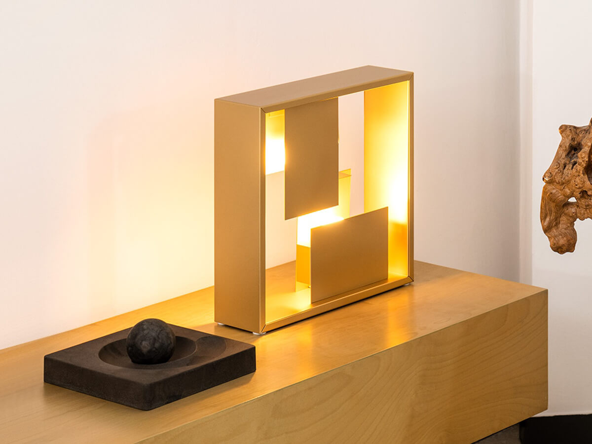 A piece of furniture where art and design intertwine giving life to something unique, strongly characterized. Fato is a table or wall lamp born from the creative genius of Gio Ponti. The structure is made of painted metal, ideal for embellishing and creating unique luminous suggestions. Strong geometries dominate this strongly inspired project, creating a play of light and shadow that are well suited to domestic spaces, although they can also play in favor of more formal situations. The square frame defines what to all intents and purposes could be a painting or even a small sculpture, freely customizable according to taste.