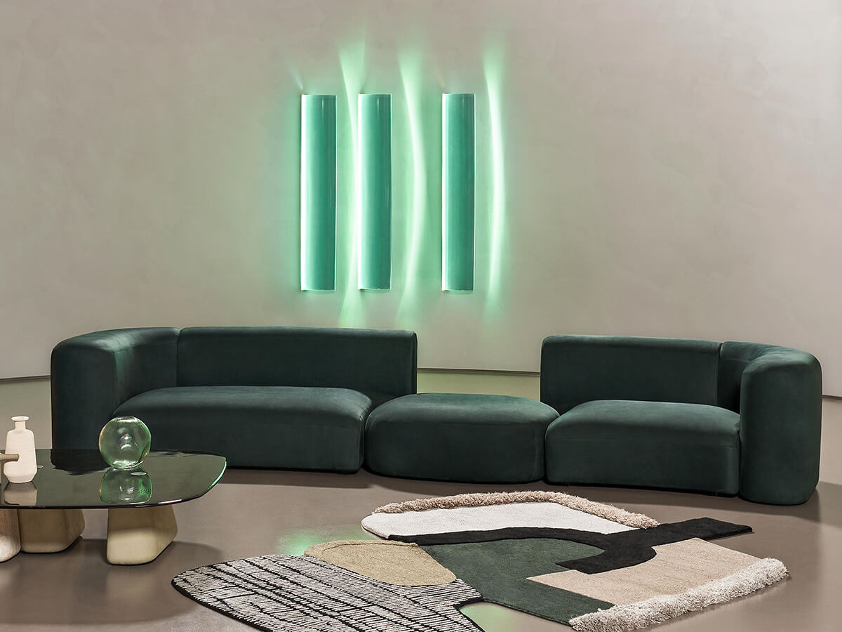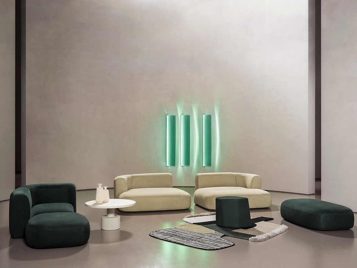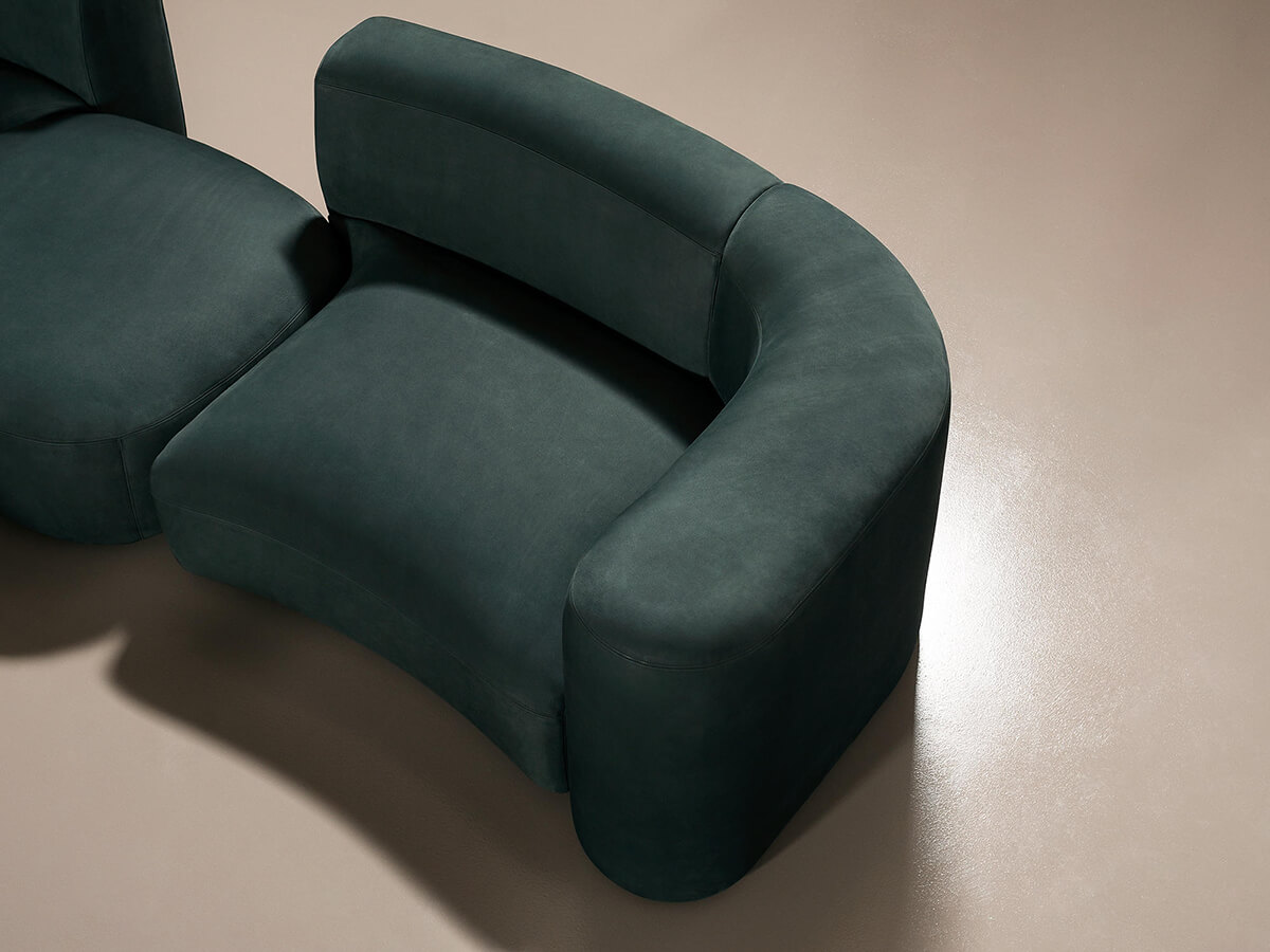 A rhythm of empty and full, of concave and convex curves defines the modular sofa Clara, designed by Cristophe Delcourt for Baxter. The structure is in fir plywood and the padding in differentiated density polyurethane foam, covered with acrylic fiber, while the springs are made from intertwined elastic ribbons of rubber. The numerous interchangeable elements make the Clara sofa extremely flexible in terms of configurations and sizes and the soft leathers of the collection allow you to further customize the seats with careful attention to detail. Clara adds elegance and style to the home and can perfectly furnish a living room, a conversation area or a large entrance.