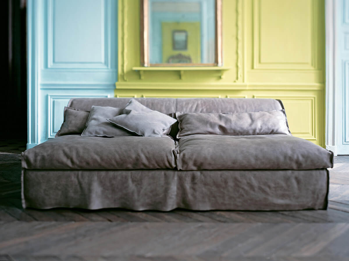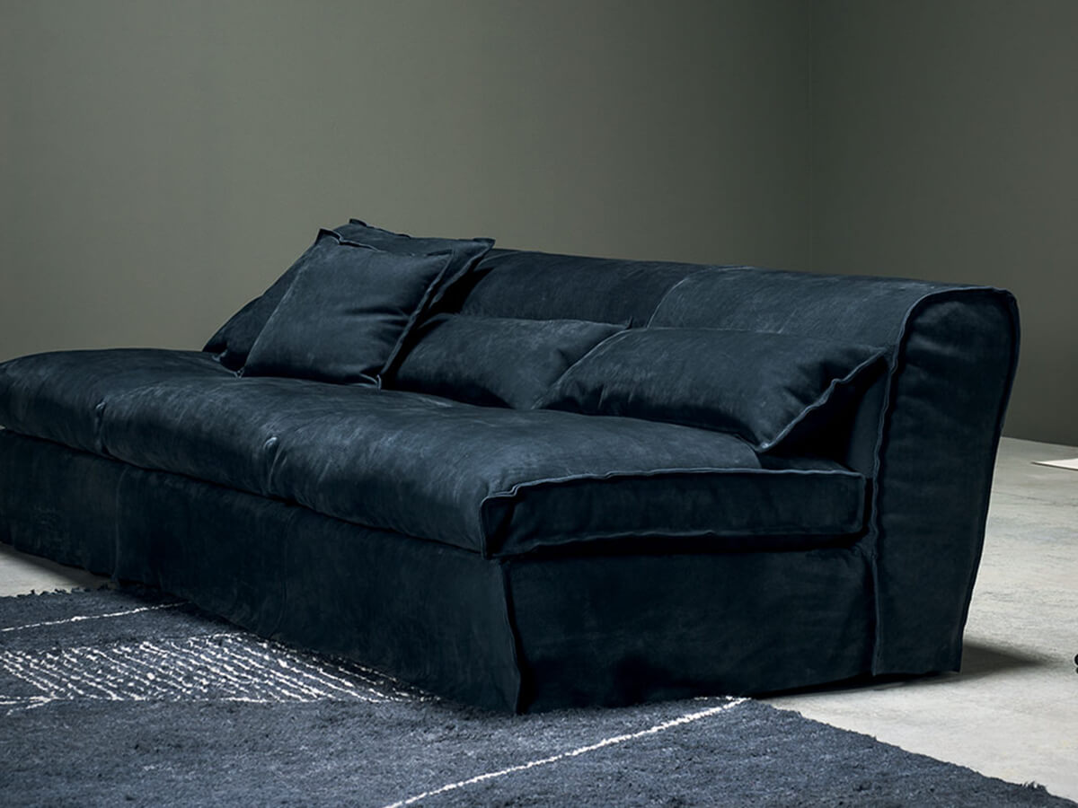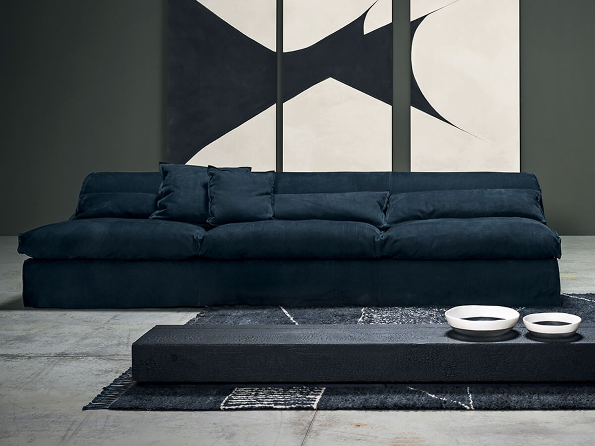 The Housse collection includes numerous proposals for the living area, differentiated between sofas and armchairs in different sizes and possibilities. Here we mention Housse Mono, Housse XXL and Housse Extra, where the Baxter Made in Itay thinking has followed heterogeneous directions and inspirations to meet the increasingly fragmented demand of everyday life. Among the models, the authenticity of the shapes stands out, deeply linked to traditions. The rounded armrests and slightly inclined towards the outside combine to create a balance of shapes except in the Mono version, where they are completely absent to give more spaciousness. Baxter leather contributes here to finalize visual and sensory comfort, ideal for any relaxation space.