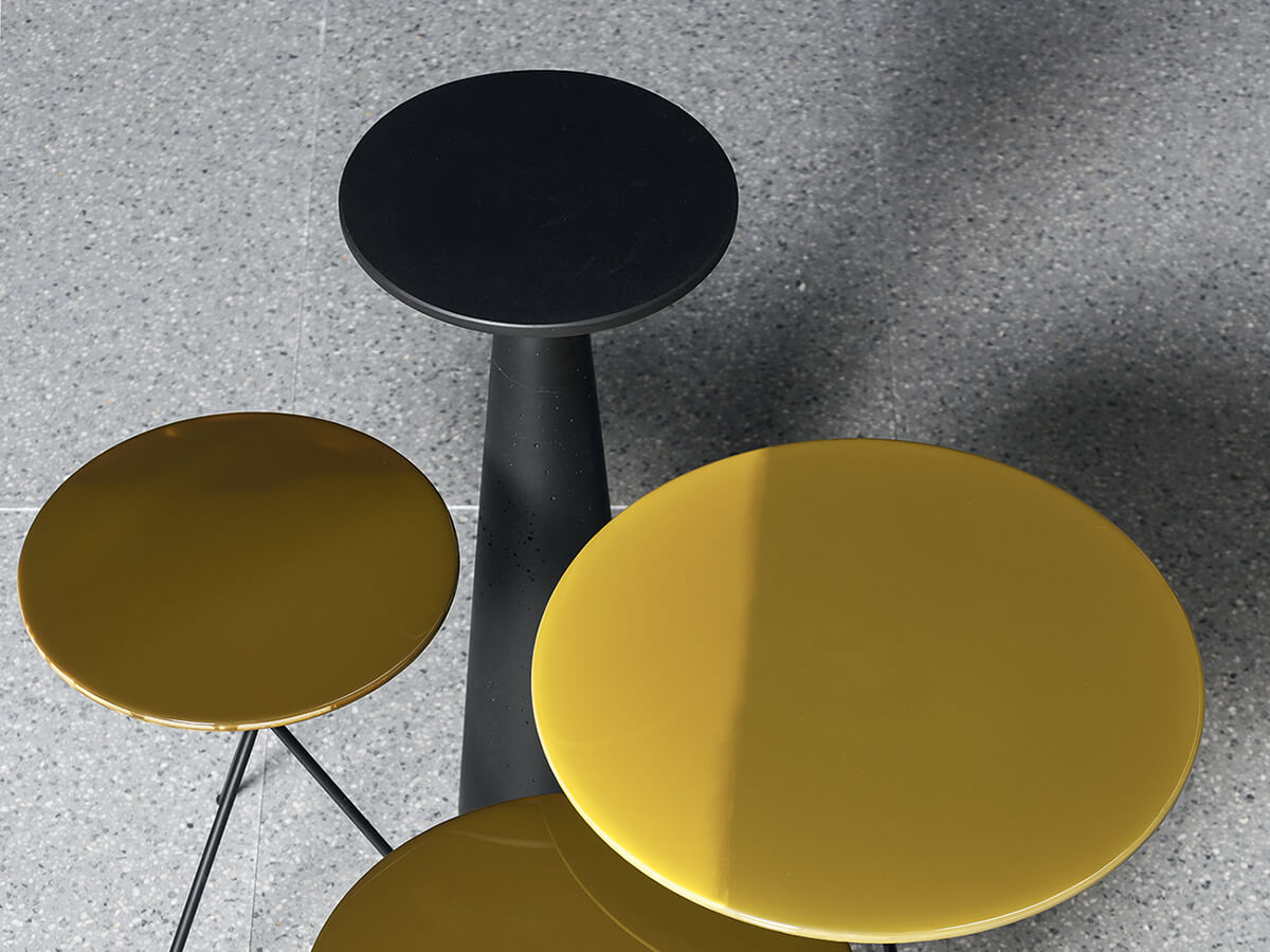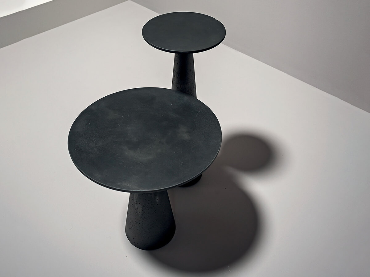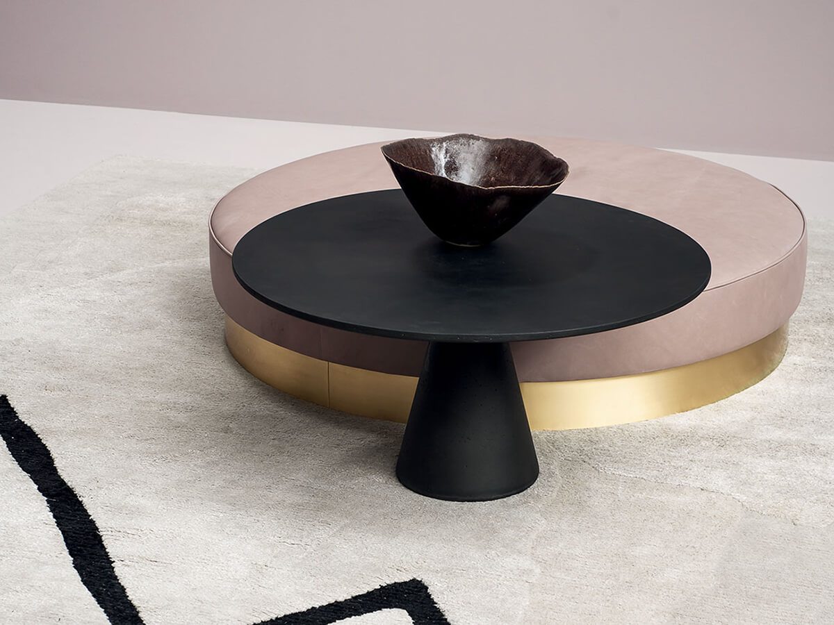 The Jove collection is declined in numerous proposals for the living and dining space, giving life to a complete assortment that is as compositional as it is functional. The Jove coffee table stands out for the characteristic cone shape of the base fused to the round top, available in different sizes and sizes. The material of which it is made, agglomerated concrete, gives it a particularly material and raw nature, an ideal focal point for heterogeneous furnishings where you want to place an element of extreme personality. In its meaning as a dining table, Juno lends itself particularly well to everyday use thanks to the intrinsic strength of the stone it is made of.* Technical features: structure and top in grey concrete with black ebony marble grit