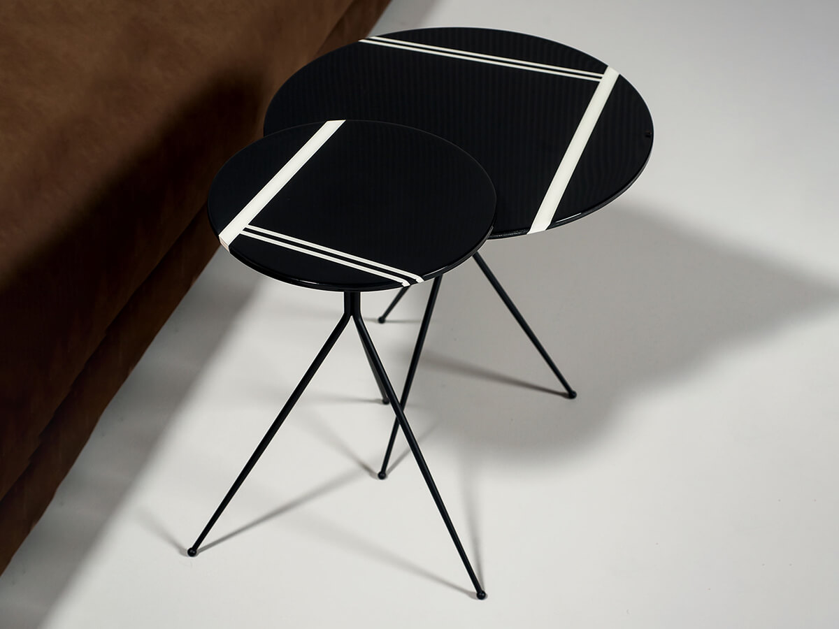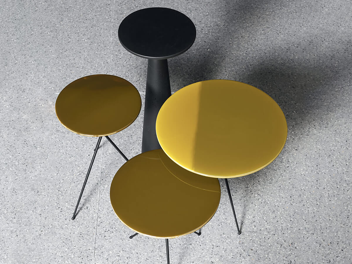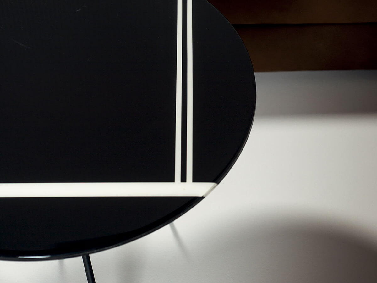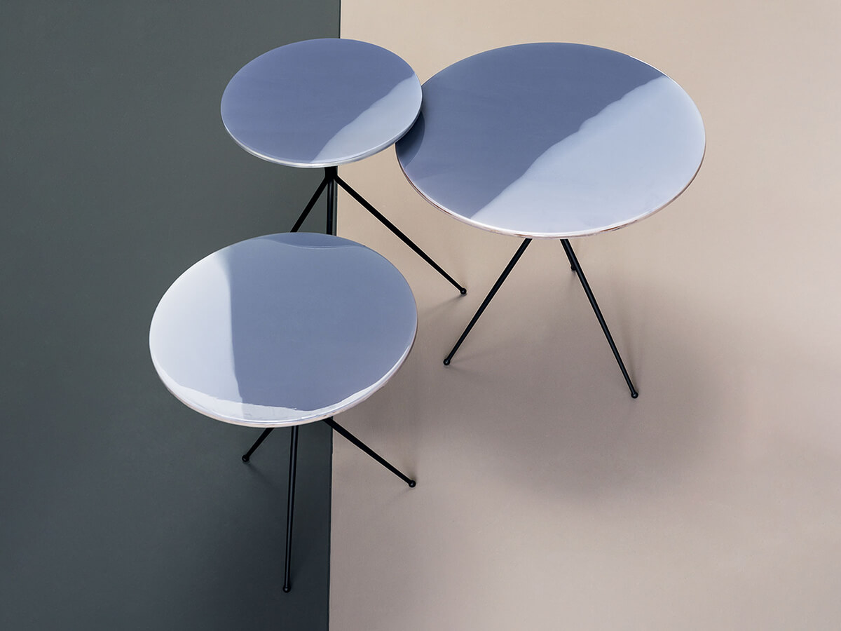 Liquid is a series of coffee tables declined in multiple colors, sizes and features. The use of color and its shades is the cornerstone of each element, created specifically to give life to dynamic and suggestive compositions. The metal base supports the MDF tops, decorated by hand with resins coated in shades and textures according to the artist's inspiration. The resulting effect is unique and extremely personal, the ideal demonstration of a design that is not afraid to dare to find new styles and taste thresholds. Ideal for the living space, Liquid lends itself well to any context of the house, finding a place even in the most intimate rooms of the sleeping area or more.* Technical features: structure in matt black painted metal