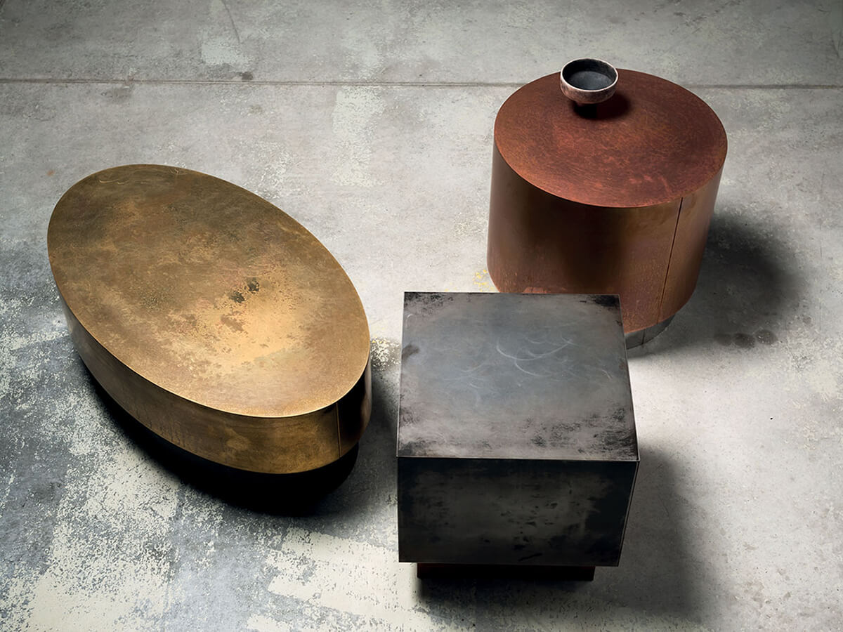 The Loren series of coffee tables represents a cornerstone of the Baxter company, a real element of characterization that fully affirms its style and craftsmanship quality. Loren is configured in numerous variations, giving life to compositions differentiated by height, size and colors used. The variety is not accidental, but specially designed by the company to make this piece of furniture versatile and suitable for different contexts of the house, as well as more open and public spaces. The different finishes available range from alpacca, iron, copper and brass. Each metal is worked by hand and prepared to express Loren's particular antiqued effect.