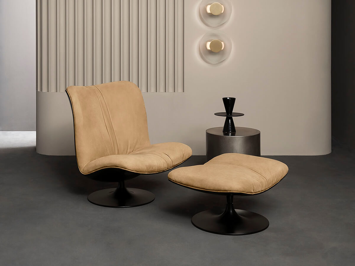 Marilyn is an elegant piece of furniture for the living area, ideal to complement the numerous proposals of the Baxter Made in Italy brand with a proposal of extreme taste and aesthetic prominence. The beauty of this model consists in knowing how to combine different artistic currents, giving rise to something new and absolutely valuable. The comfortable padding of the seat and back is in differentiated density polyurethane foam with an acrylic fiber covering covered with goose down. Baxter leather contributes here to create details of incredible value, capable of enriching the proposal of great stage presence.* Technical features: matt black painted structure - swivel base