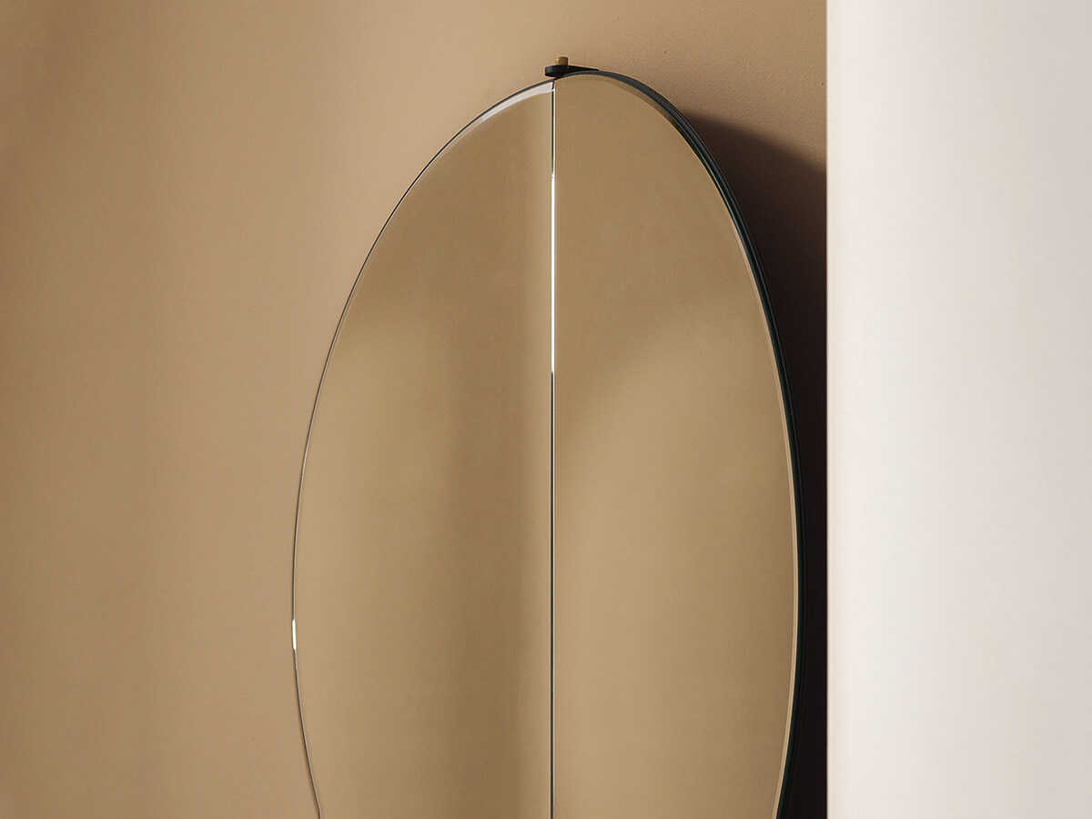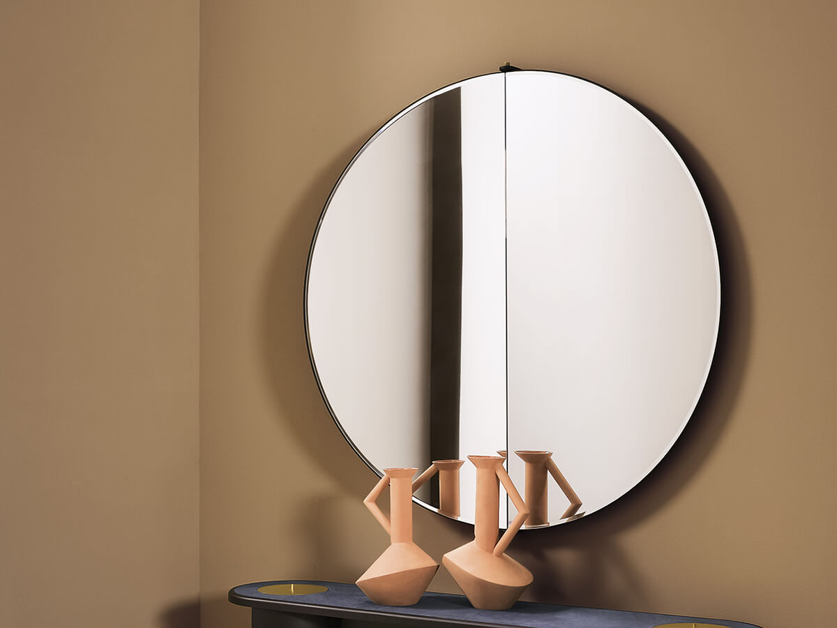 Peris is a mirror of extreme elegance, capable of adapting to different locations, always being a prominent detail in the general context. The swivel structure in matt black painted metal with satin brass details differentiate it from many other proposals in the sector, creating a peculiar and extremely tasteful harmony. The rear plates are made of aluminum with leather upholstery. Beautiful and one of a kind, Peris reflects the Baxter philosophy in creating unique and highly distinctive works, ideal for those who want to stand out in any context.* Technical features: swivel structure in black painted metal and rear sheets covered in leather