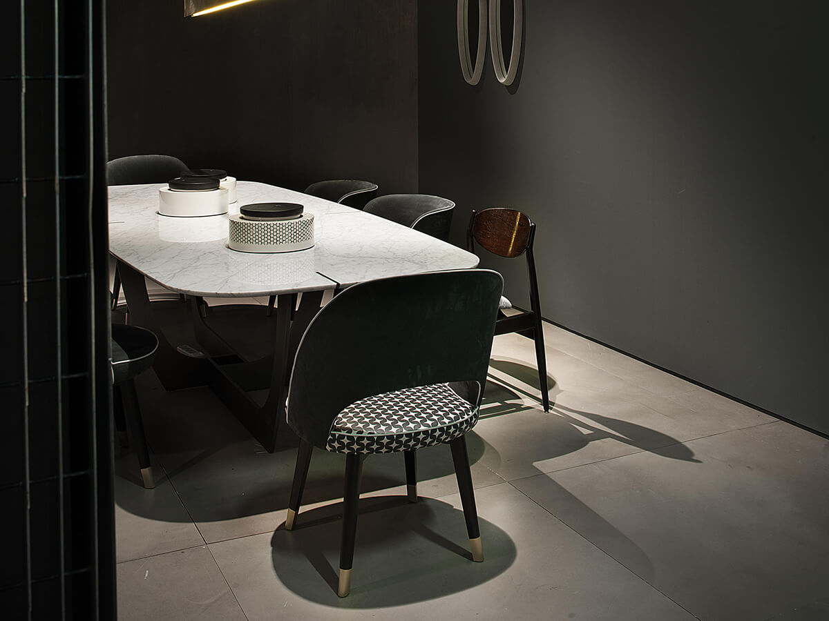 Roberto Lazzeroni (1950-) is one of the leading Italian designers on the contemporary scene. His sign, measuredly retro but with an eye firmly on the future, gives life to highly decorative furnishings, with refined elegance, in which precious materials are revitalized by sinuous curves that give them an impression of warm and enveloping luxury. Born in Pisa and trained as an architect in Florence, close to Radical Design in his youth, he was active for several years in the field of interior architecture before approaching product design thanks to the partnership with Ceccotti Collezioni, which began in 1988 and continued until today. Over the years he has managed to achieve ever-increasing success, appearing today among the most prestigious brands of brands such as Baxter, Poltrona Frau, Flexform Mood, Giorgetti, Lema, Antoniolupi, Visionnaire and Zanotta.Read more