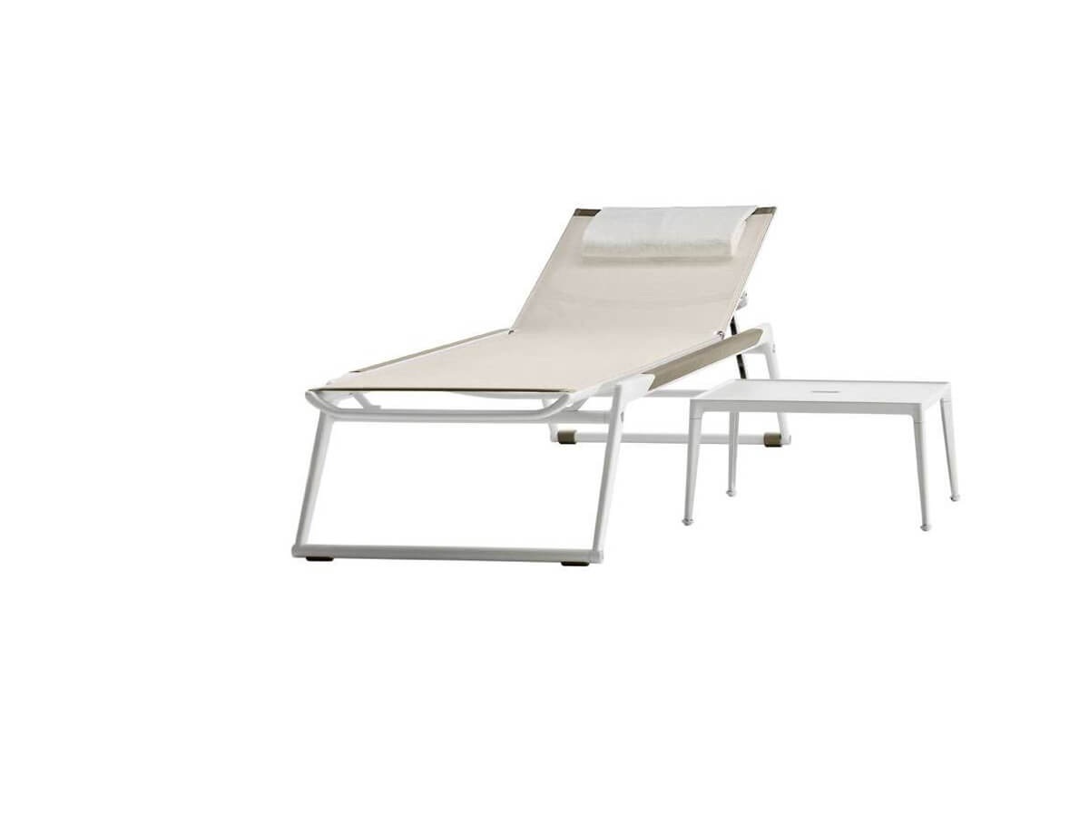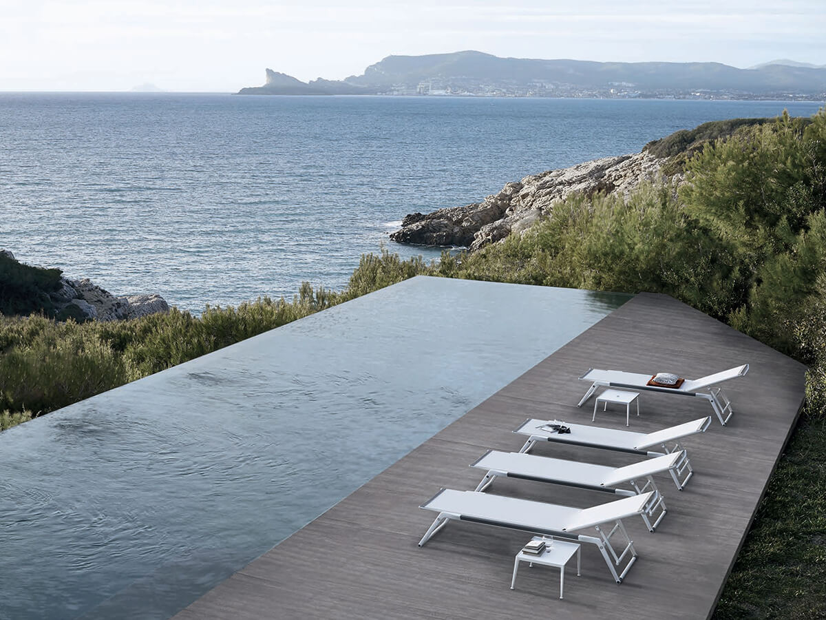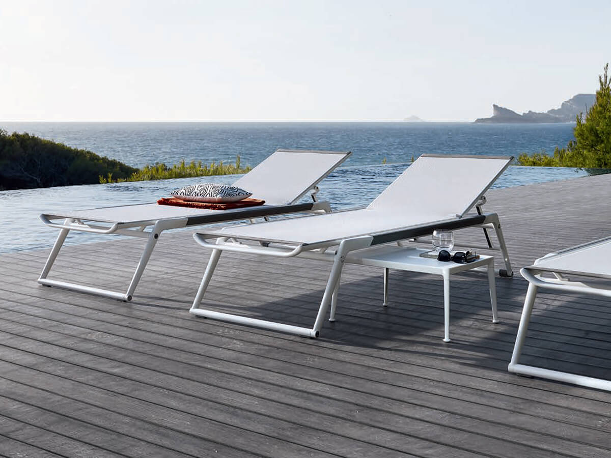 The Mirto Outdoor collection by Antonio Citterio includes numerous proposals for the outdoors aimed at satisfying the need for an elegant design combined with high-end craftsmanship. Resistance combined with versatility are the points of merit of each proposal which includes chairs, armchairs, tables, consoles and sun loungers. The chaise longue stands out for the use of the Styx bed base in Batyline® Canatex and the structure in die-cast and extruded aluminum with polyurethane paint. The details inserted inside this product, such as the acetal resin wheels and the micro-cast stainless steel hinges, make it particularly resistant for outdoor use.