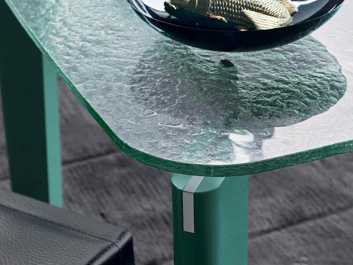 *Price valid for the version with top in green cattedrale glass and legs in oak in W.200 x D.100 cm (cod. TO200E).