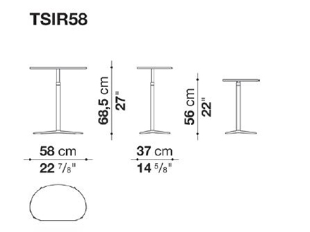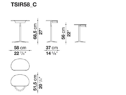 W.58 x D.37 x Adjustable Height H.56 - 68,5 cm
