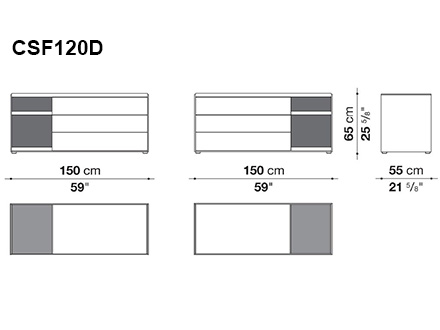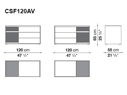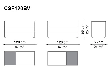 *Price valid for the chest of drawers version in W.120 x D.55 x H.65 cm with n.03 drawers and one open unit - fixed shelf - in satin finishing - without any insert on top (cod. CSF120AF).
