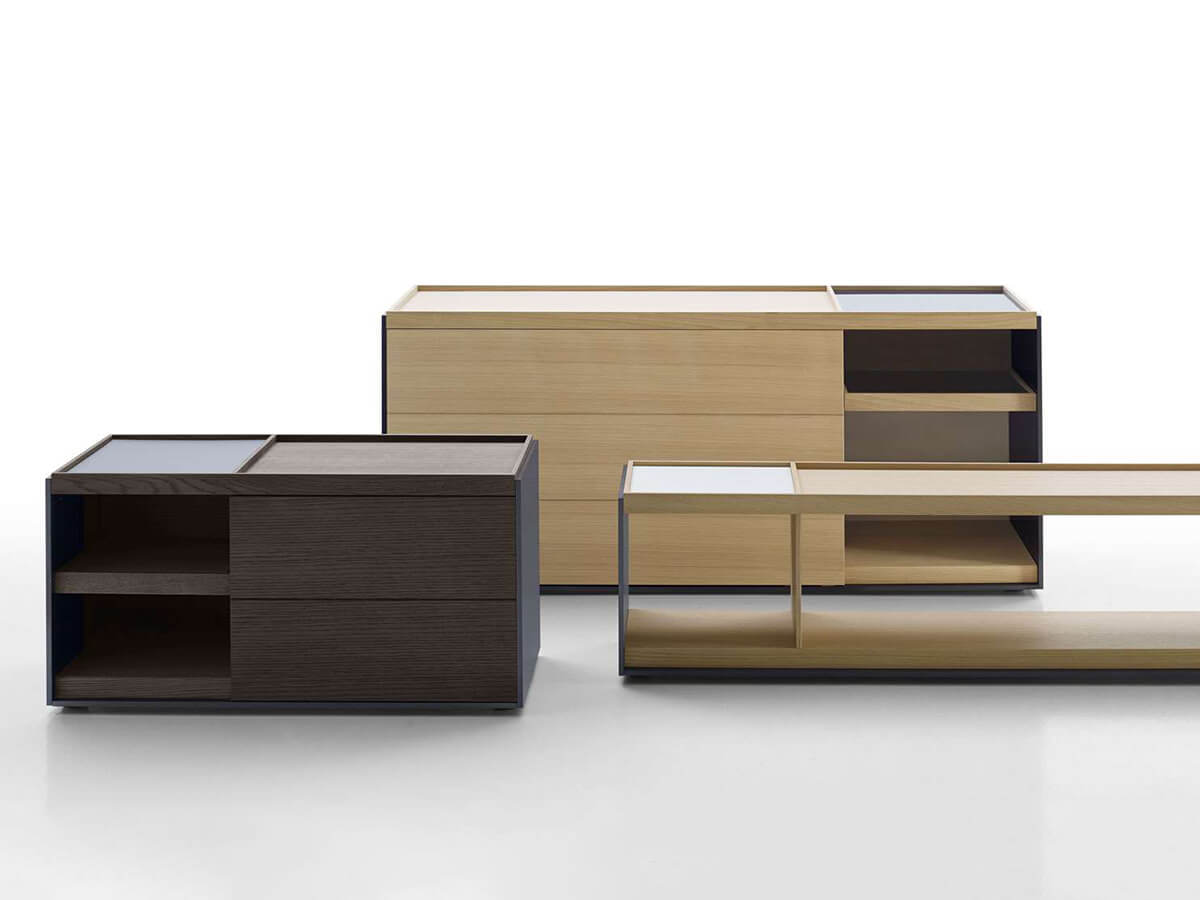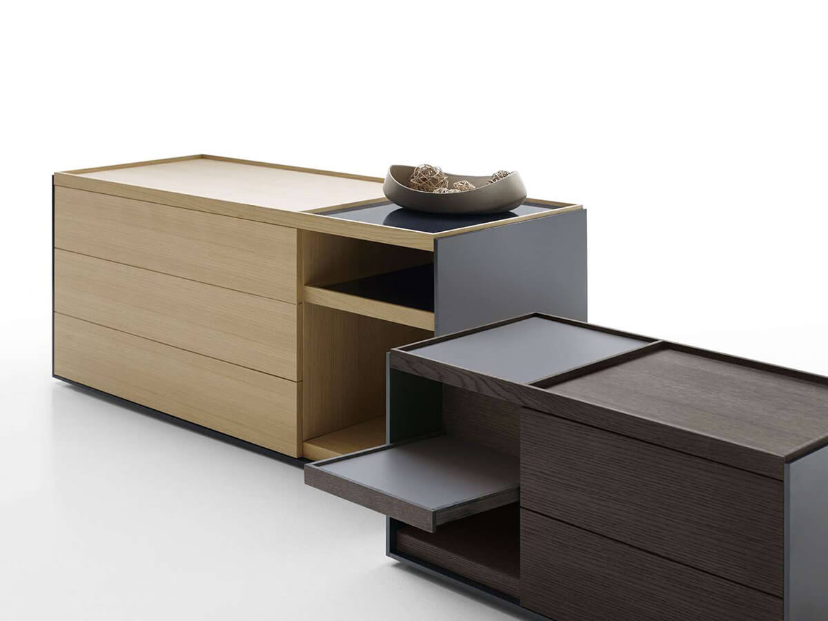 From the hand of Vincent Van Duysen comes the Surface night container collection, a praise of a sculptural aesthetic and a pictorial aesthetic appeal. Among the numerous proposals we mention chest of drawers and bedside tables, highboards and containers for the sleeping area. The exquisitely minimal mold combined with the choice of materials and finishes of extreme value make Surface an extremely elegant line, while retaining elements of strong geometric rigor. The preferred palettes for these compositions recall natural and balanced colors so as to recreate an emotional harmony within the spaces dedicated to relaxation and daily rest.