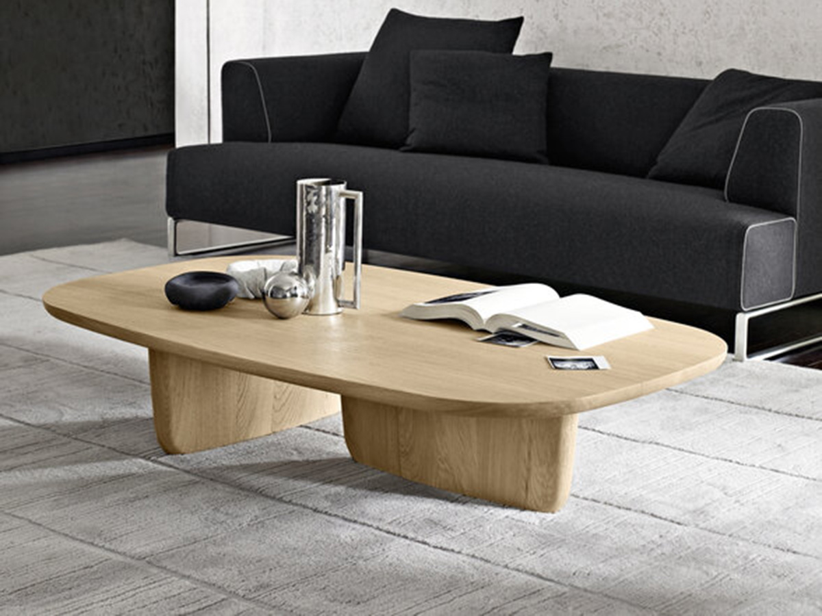 Among the numerous creations by B&B Italia for the dining area and living space, the Tobi-Ishi coffee table stands out, an example of studied modernity and superb modulation of shapes. Tobi-Ishi shows off in its shape a clear reference to the ornamental stones of Japanese gardens, soft and perfectly shaped in order to create sculptural superimpositions. It is available in both rectangular and round versions to better adapt to the furnishing needs of the different environments in which it will be placed. The cantilevered top and the bases appear different depending on the point of view, while the numerous finishes available create different interpretations, giving a unique character to each composition.