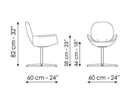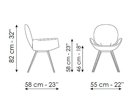 With Metal Legs - W.55 x D.58 x H.82 cm