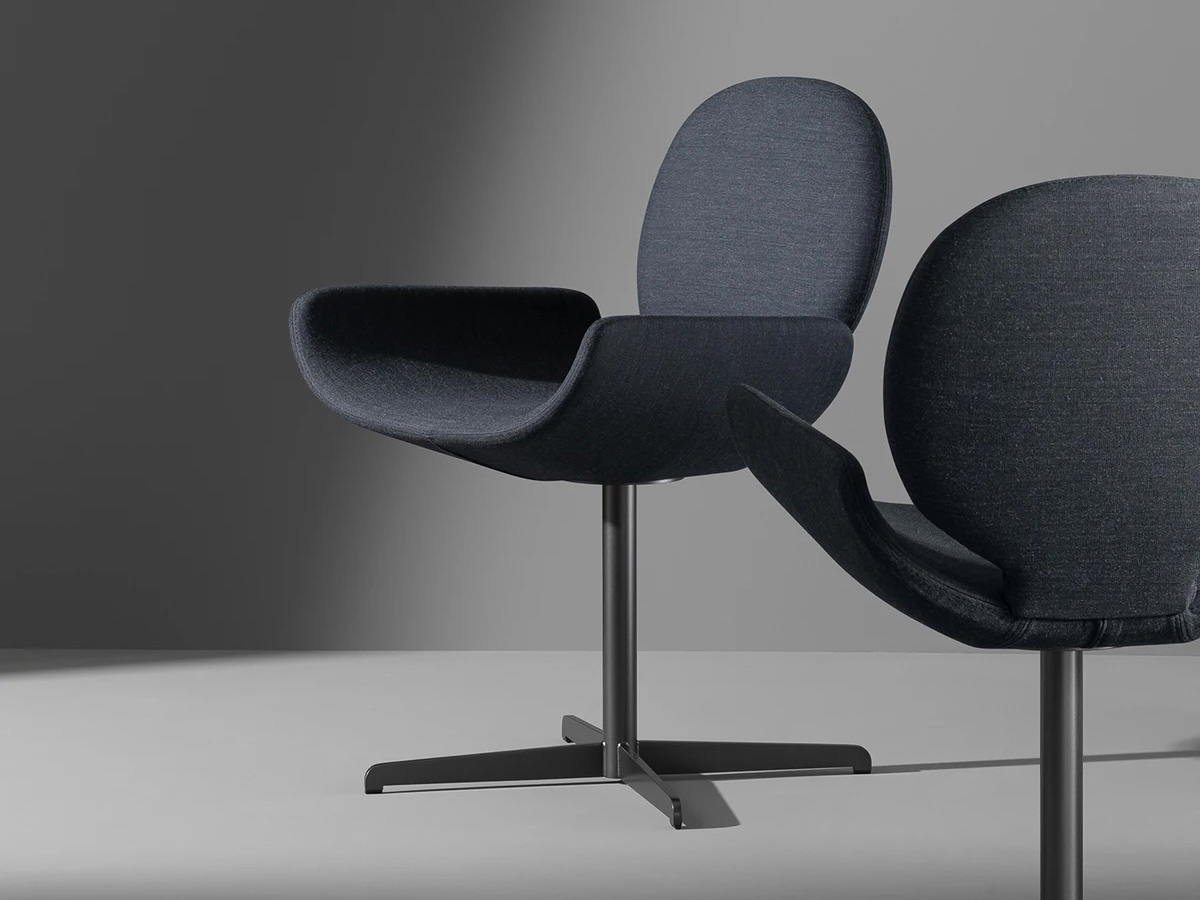 Whimsical and out-of-the-box, Youpi Chair features a back profile reminiscent of that of a stylized human figure, with arms outstretched as if inviting someone to sit within its embrace. This seat strikes for its highly original design that adds a touch of irony to lines that are in themselves sharp and pleasing, pefrect for fitting into diverse furnishing contexts. Upholstery can be leather or fabric, distributed over the entire surface. The circular backrest flows into the wide seat, and the whole is sustained by a flared cylindrical base, excellent for supporting, but without taking up more space. Youpi Chair is also available in a version with four metal legs, for those who prefer a more canonical design.