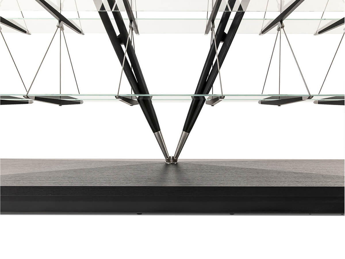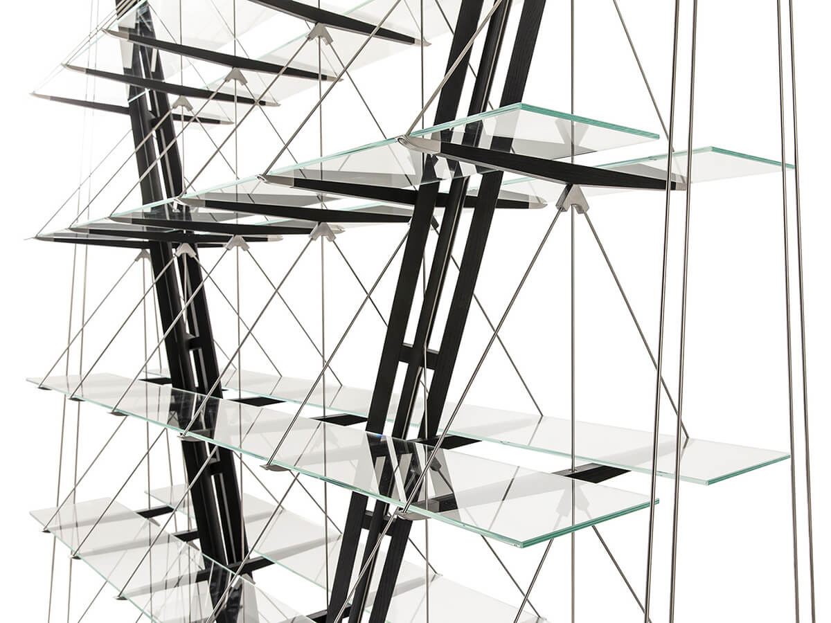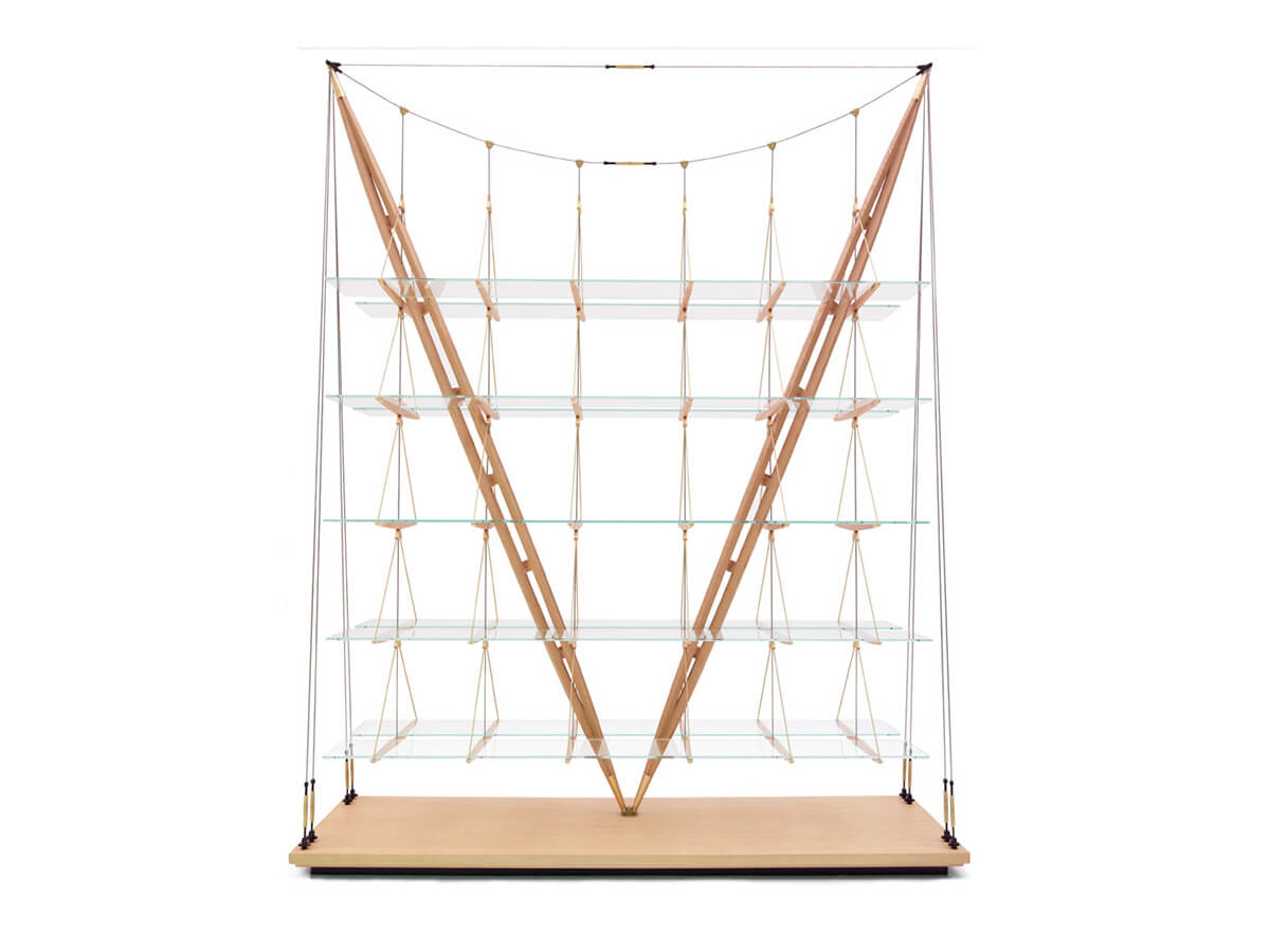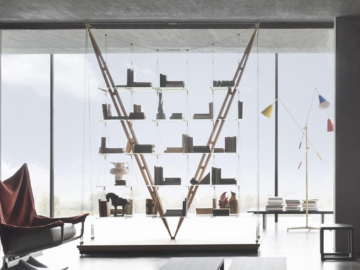 An outstanding object for its shape and its concept, where gravity seems to disappear in function of an aesthetic farsightedness which does not fear the laws of physics. Designed by Franco Albini in 1940, Veliero was conceived as a unique piece for his own residence in Milan. Re-edited later by the brand Cassina, it is considered nowadays as an authentic example of engineering melted with high quality design. The desire to follow Albini’s original project has led Cassina to keep unchanged the linearity of the design and the avant-garde core of this item, though adding some atmospheric intervals of light and air, able to make literally floating the books and the items positioned inside each compartment. Raised up to be a real work of art, Veliero comes to life again in our time, nevertheless preserving all its own grandeur.