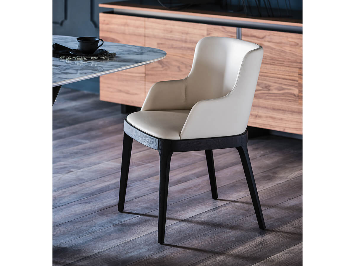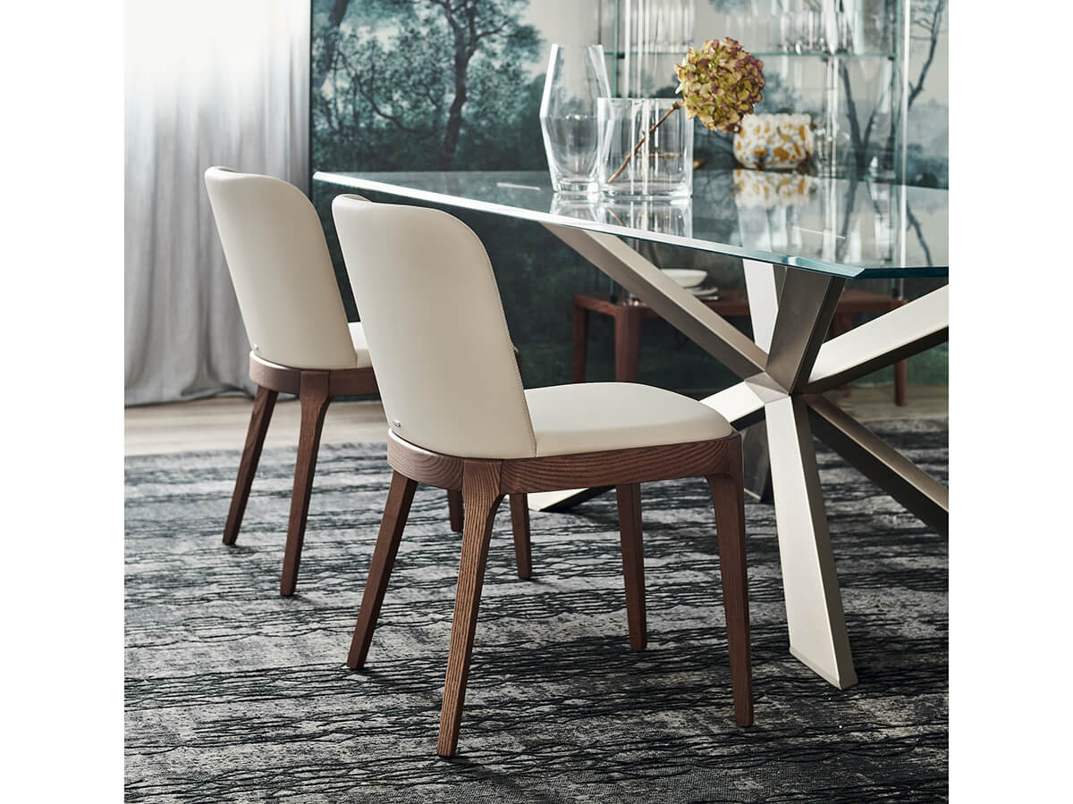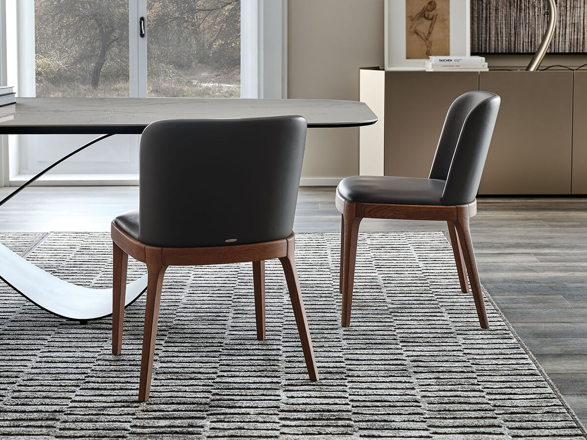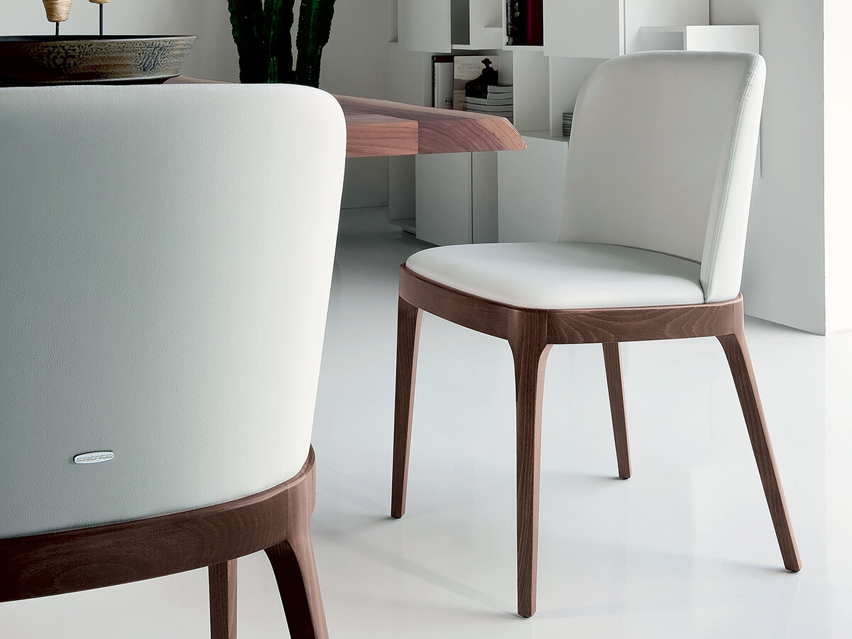 A hymn to refinement and comfort. Magda expresses in a few simple lines the taste of a furniture created to welcome, to give moments of simple peace in any room of the house. Magda belongs to a family of upholstered chairs with an enveloping backrest and structure in precious solid wood. Cattelan Italia adds an accurate series of upholstery to create unique models, ideal for environments with a different style. The complete series includes elegant chairs for the dining room, modern leather chairs and armchairs, designer stools for the kitchen, including the ML versions with metal legs and Couture. The latter is expressed through a precious sartorial workmanship on the backrest. Ideal for living and contract environments