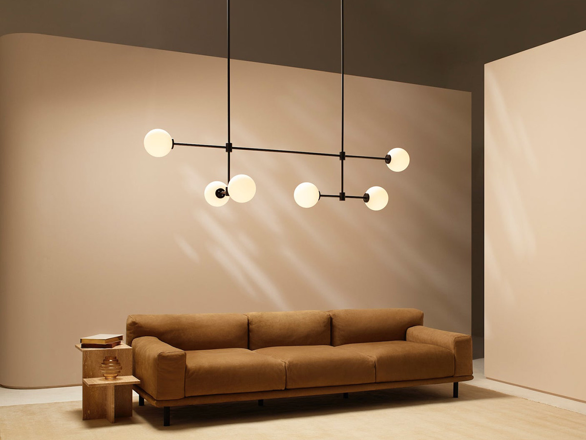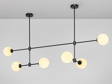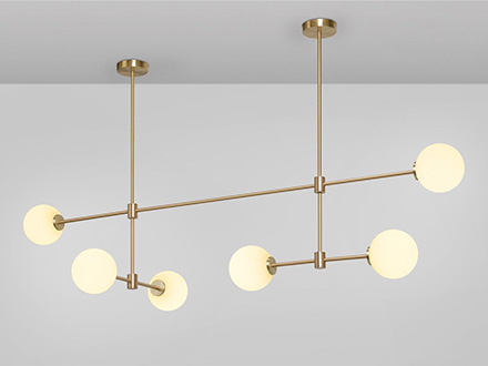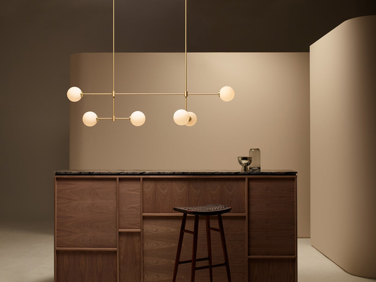 The Trevi collection was born from a game of weights and counterweights, where suspended bars support glass ampoules within which a soft and delicate light diffuses, perfect for any type of room in the home. CTO Lighting thinks of this collection by declining it in numerous possibilities and configurations of different sizes, each aimed not only at composing new expressions, but also filling the space in a different way, showing off a unique personality. The satin brass structure fits perfectly with the opal glass lampshades, creating atmospheres of great beauty. Balance is the cornerstone of the entire collection, as each component appears to be balanced to form a weightless structure.